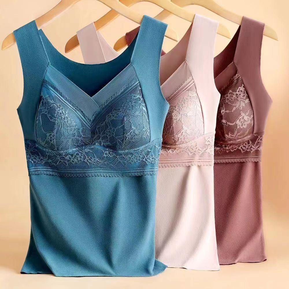 【買一發三】秋冬一體杯德絨蕾絲保暖背心