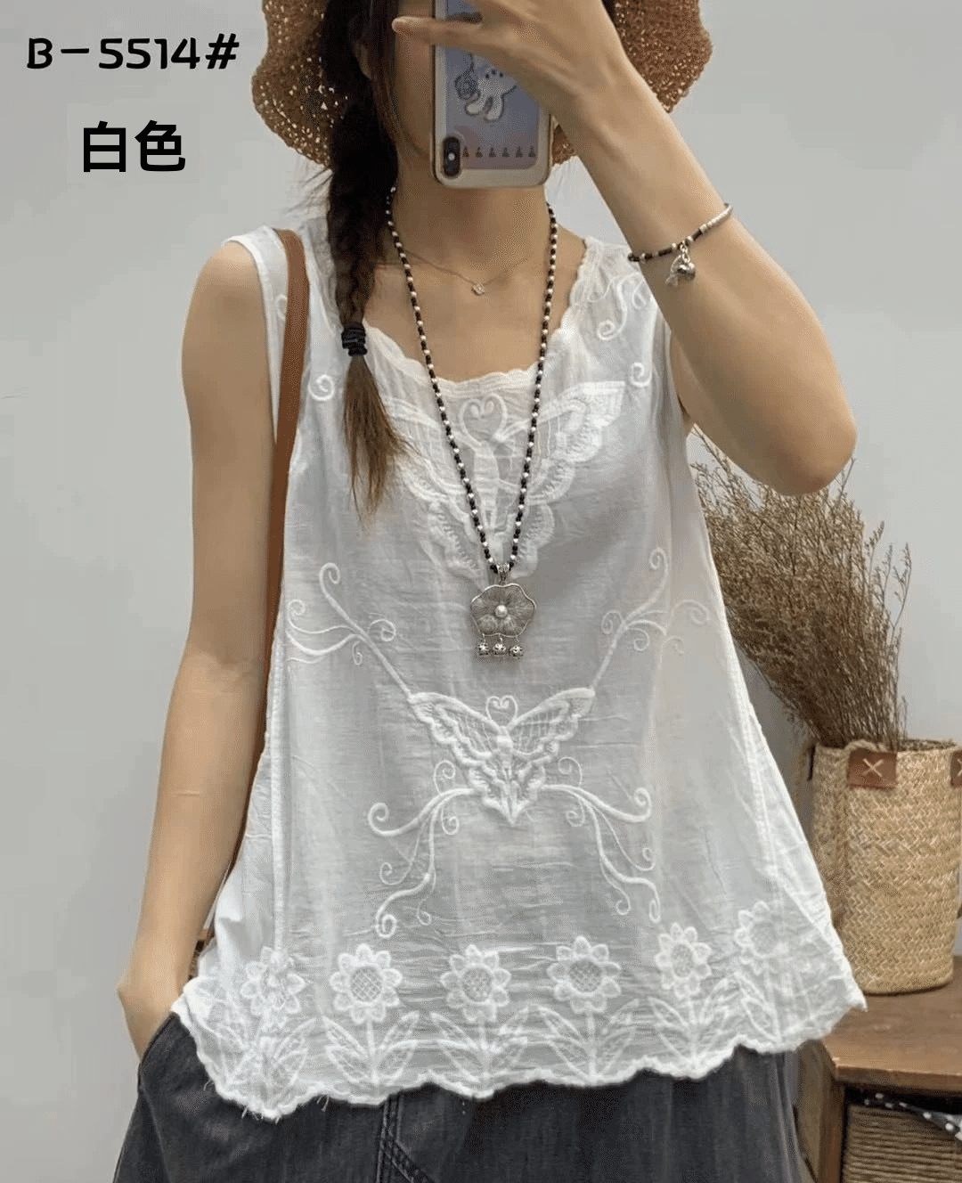 2025新款復古做舊棉質刺繡無袖背心