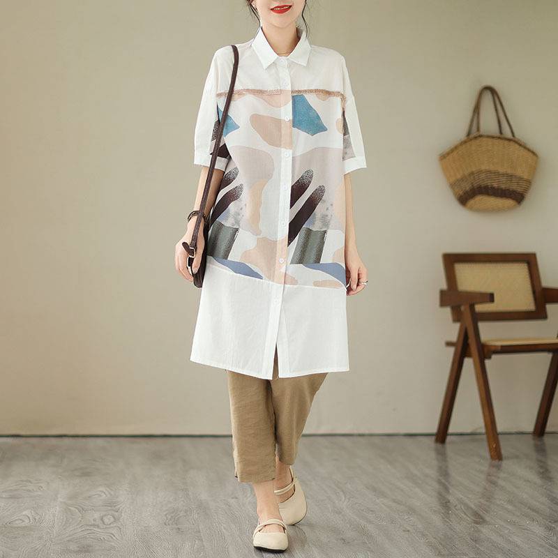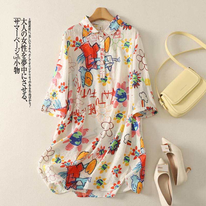 【棉麻印染】夏季多巴胺彩色塗鴉襯衫裙