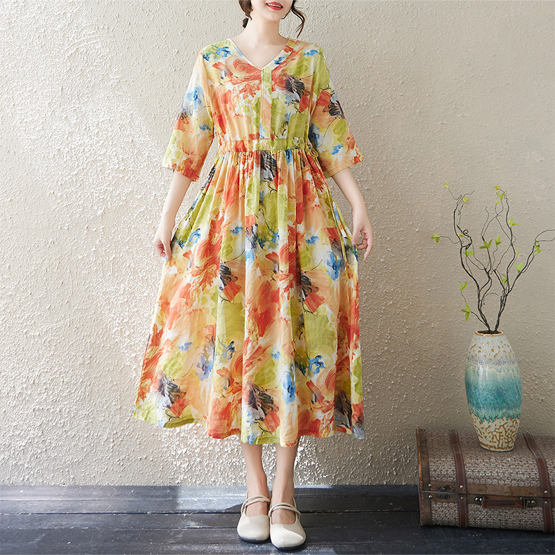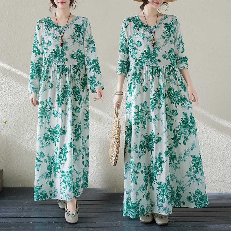 2025夏季文藝復古棉麻寬鬆顯瘦圓領短袖