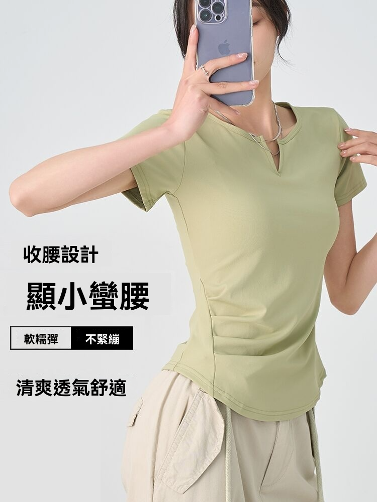 親膚軟糯!女士收腰顯瘦圓領氣質短袖