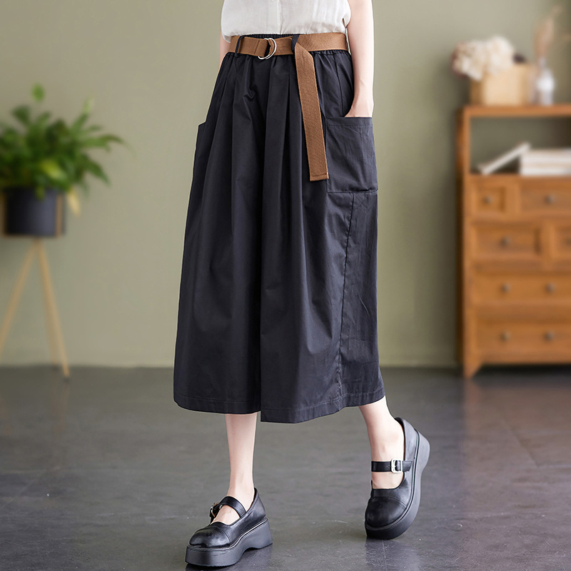 超百搭巨顯瘦!夏季新款純棉鬆緊腰七分闊腿褲