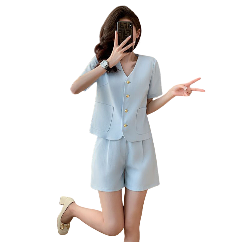 時尚顯瘦!小香風高級感西裝短袖套裝