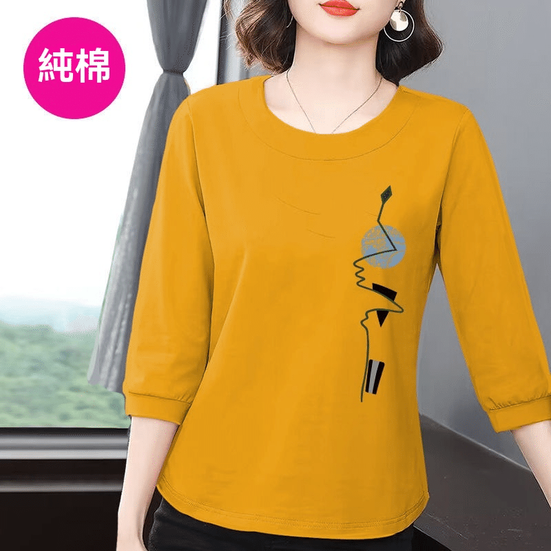 秋季新款純棉印花寬鬆顯瘦七分袖上衣