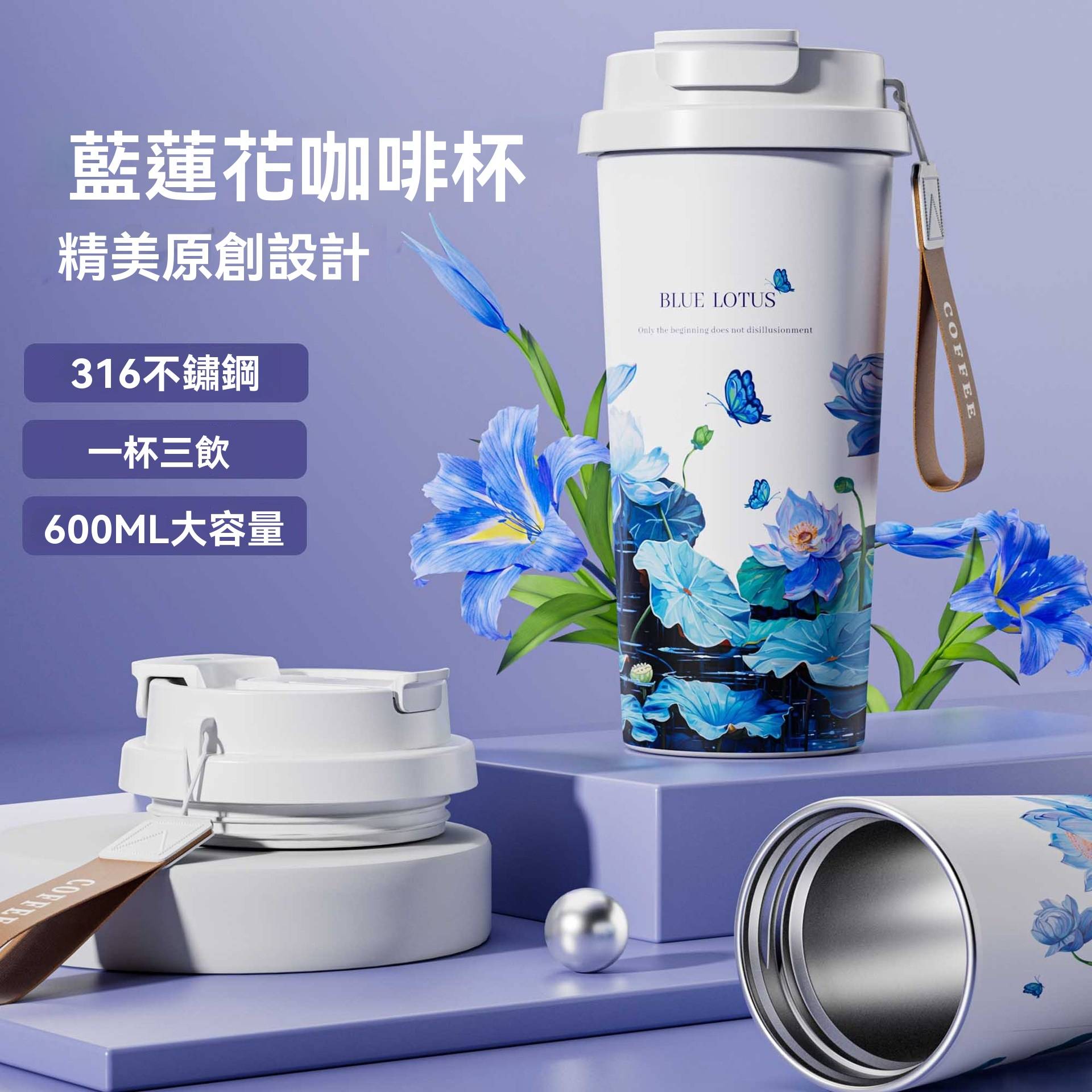 316不鏽鋼原創藍蓮花高顏值雙飲保溫杯