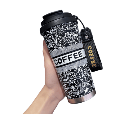 半小時前霸國潮風大容量316不鏽鋼保溫杯 兩個裝 霸王茶黑色+花語白色