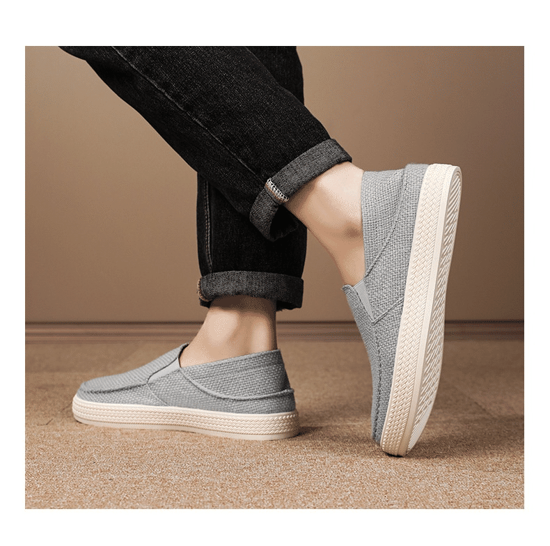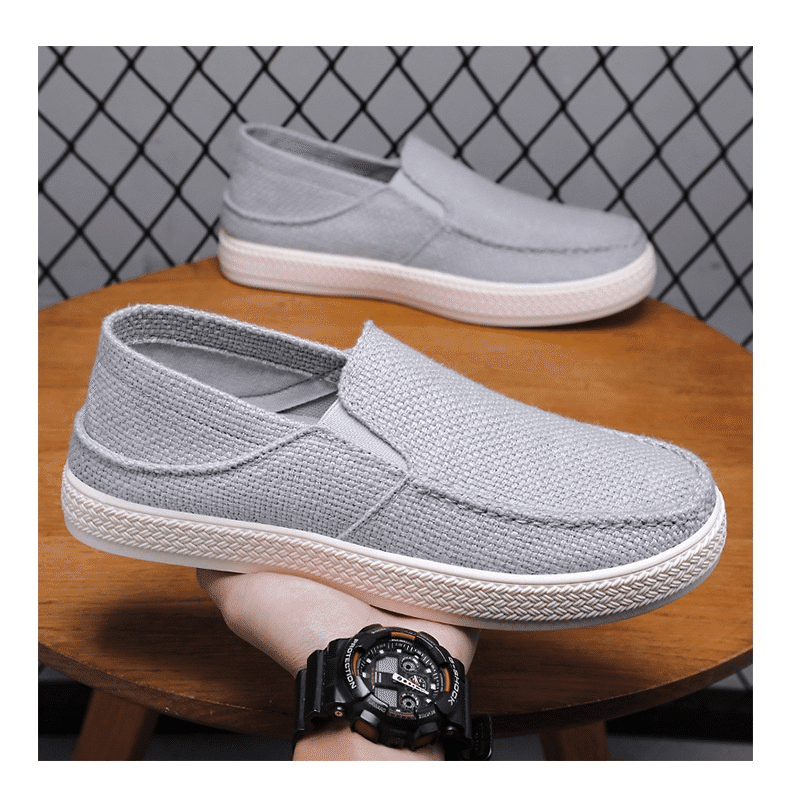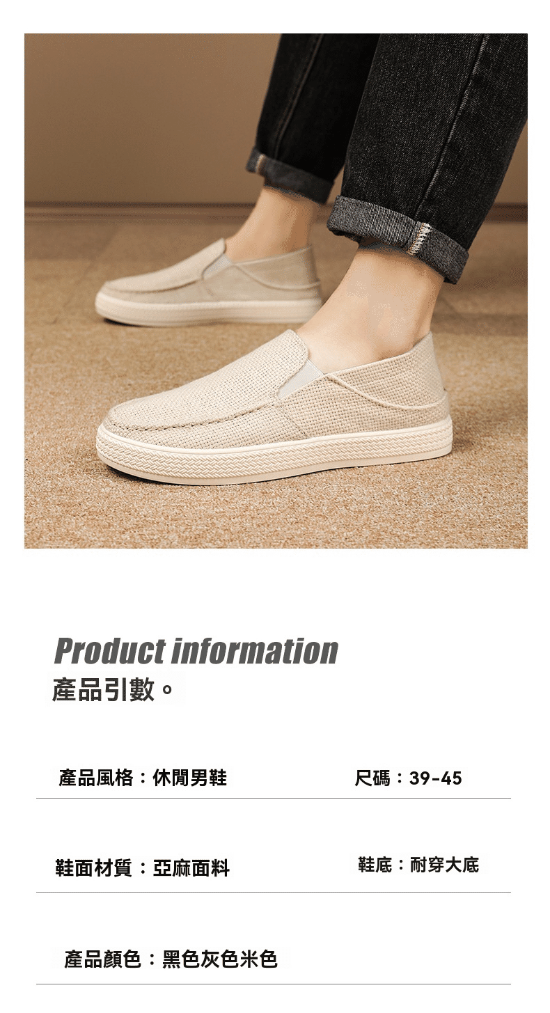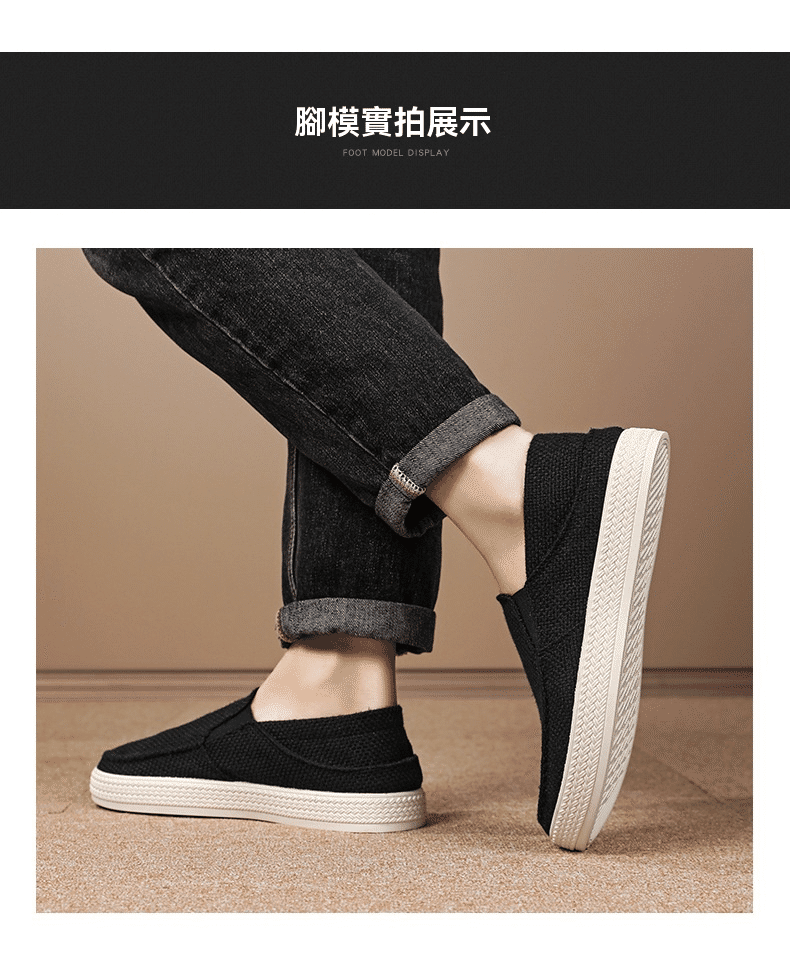 4分鐘前【买一送一,均價599】男士軟底亞麻透氣休閒鞋 灰色+黑色