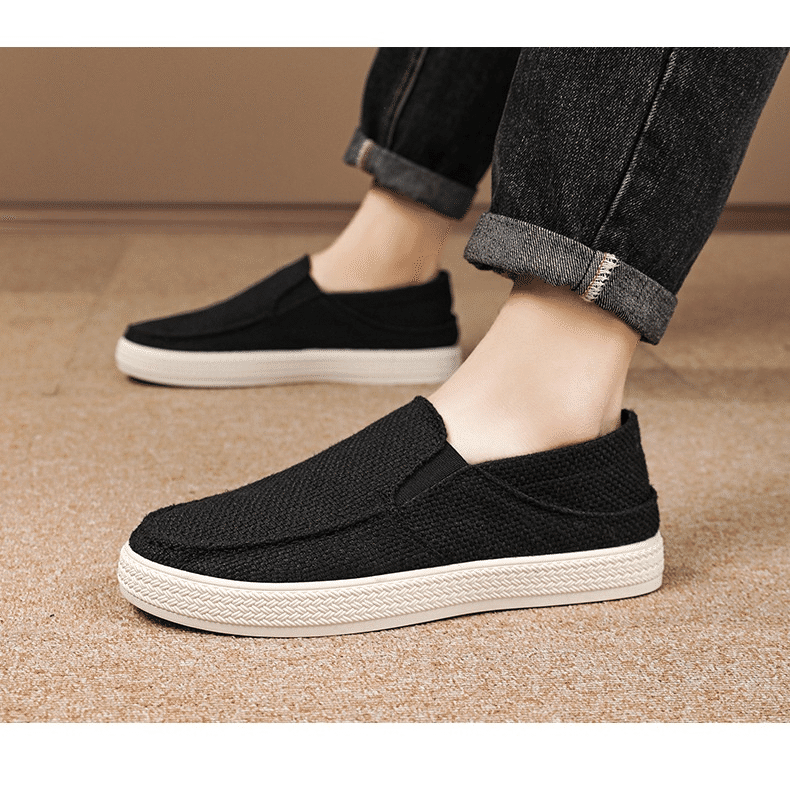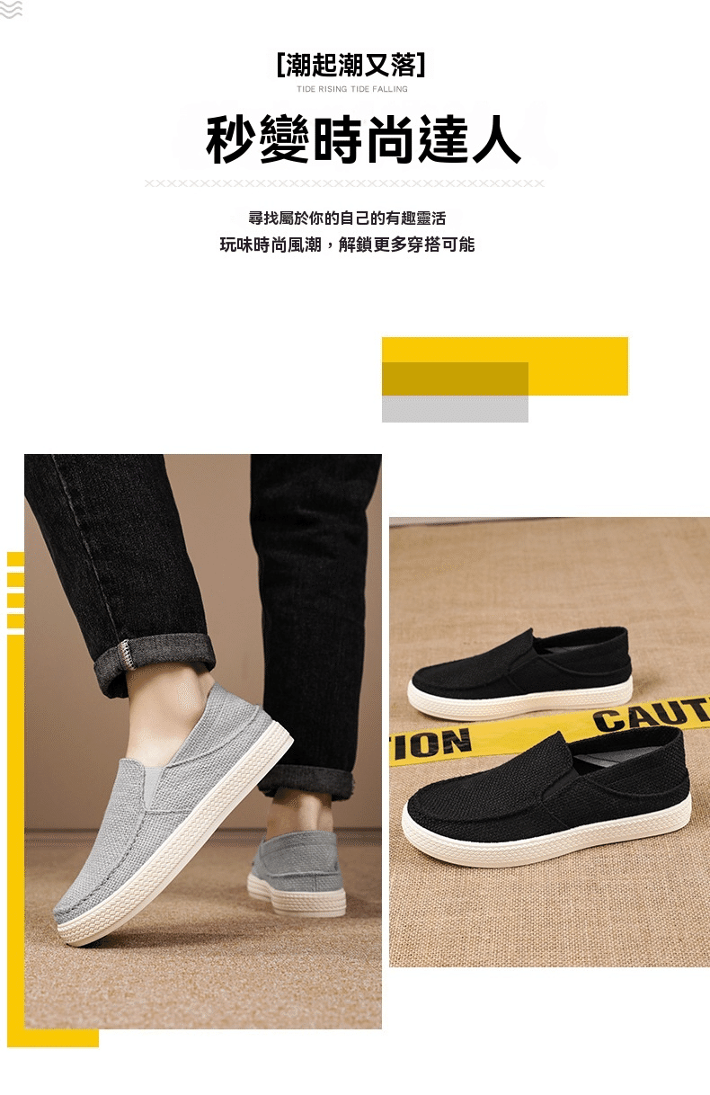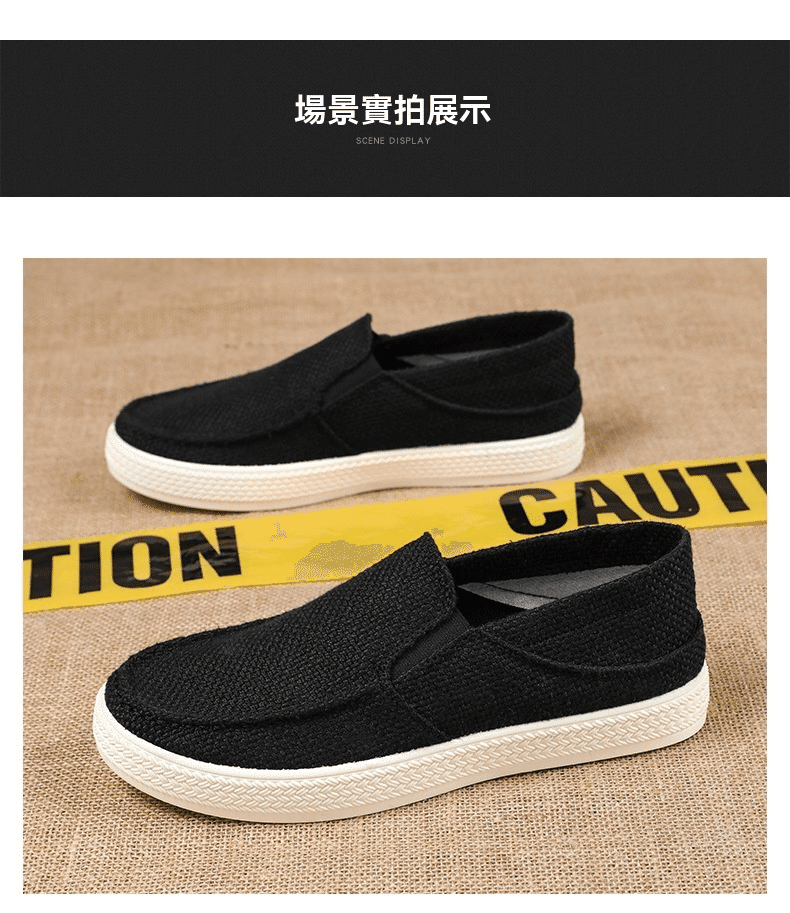 2分鐘前【买一送一,均價599】男士軟底亞麻透氣休閒鞋 灰色+黑色