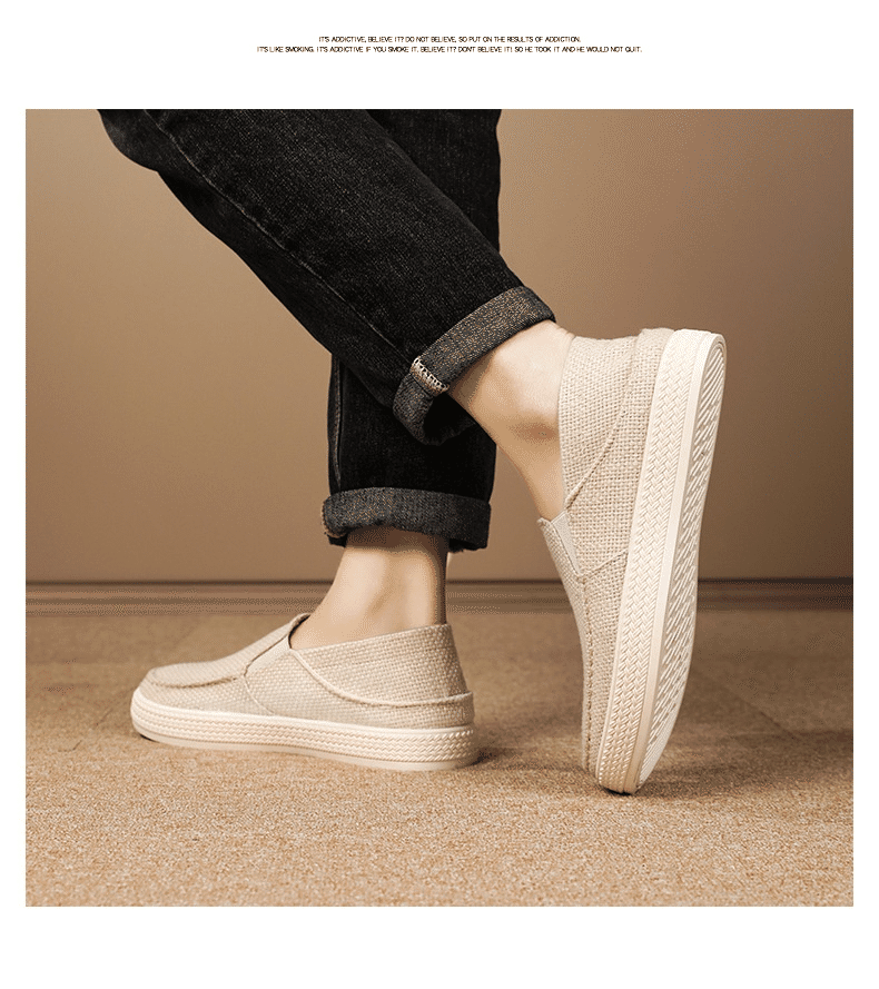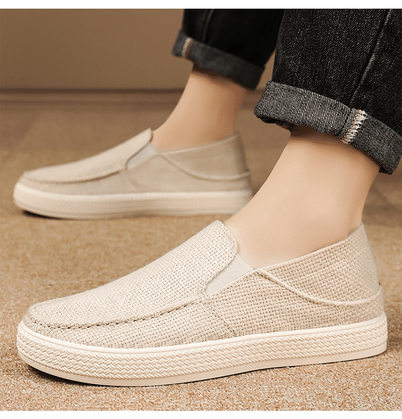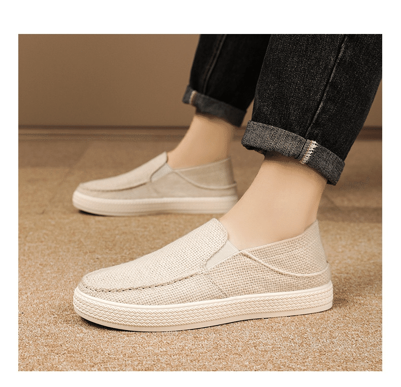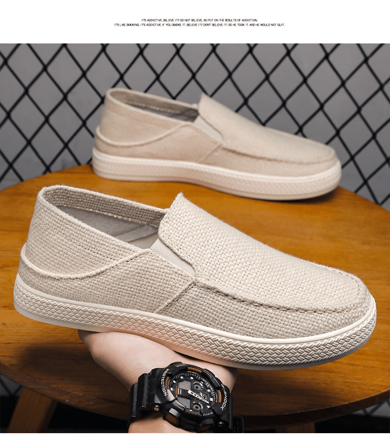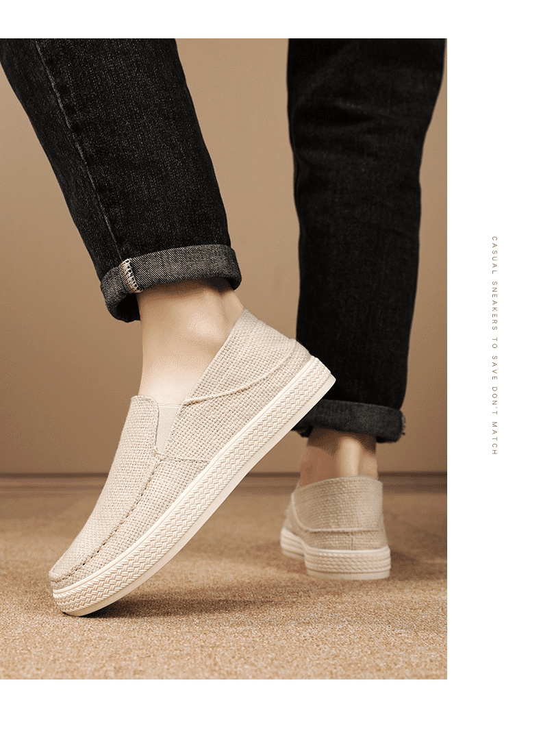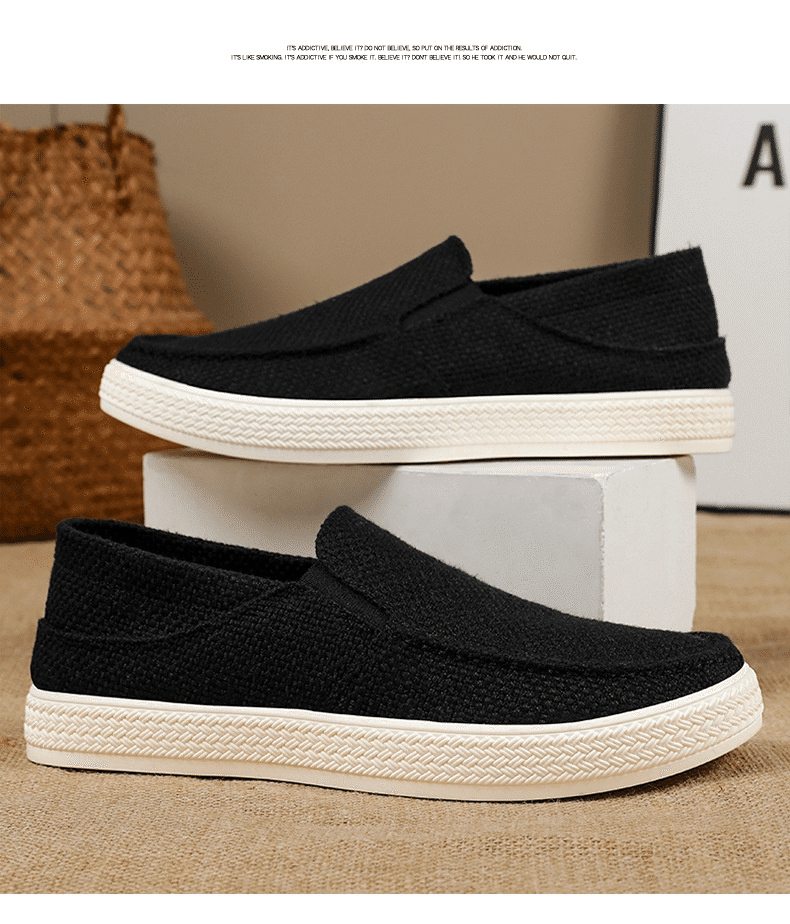 5分鐘前【买一送一,均價599】男士軟底亞麻透氣休閒鞋 米色+黑色