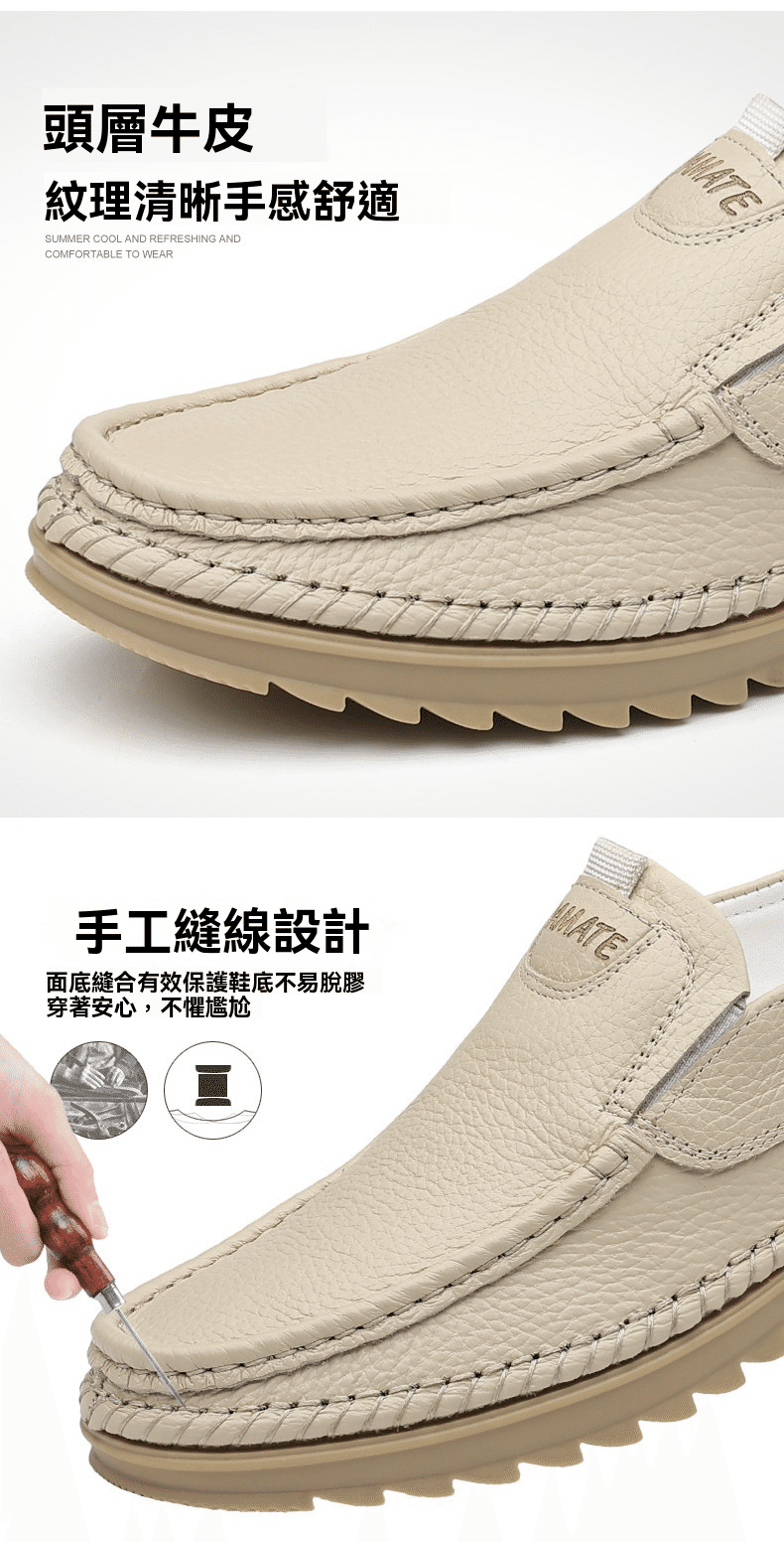 5分鐘前男士頭層牛皮一腳蹬休閒皮鞋 米色