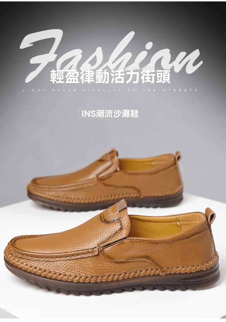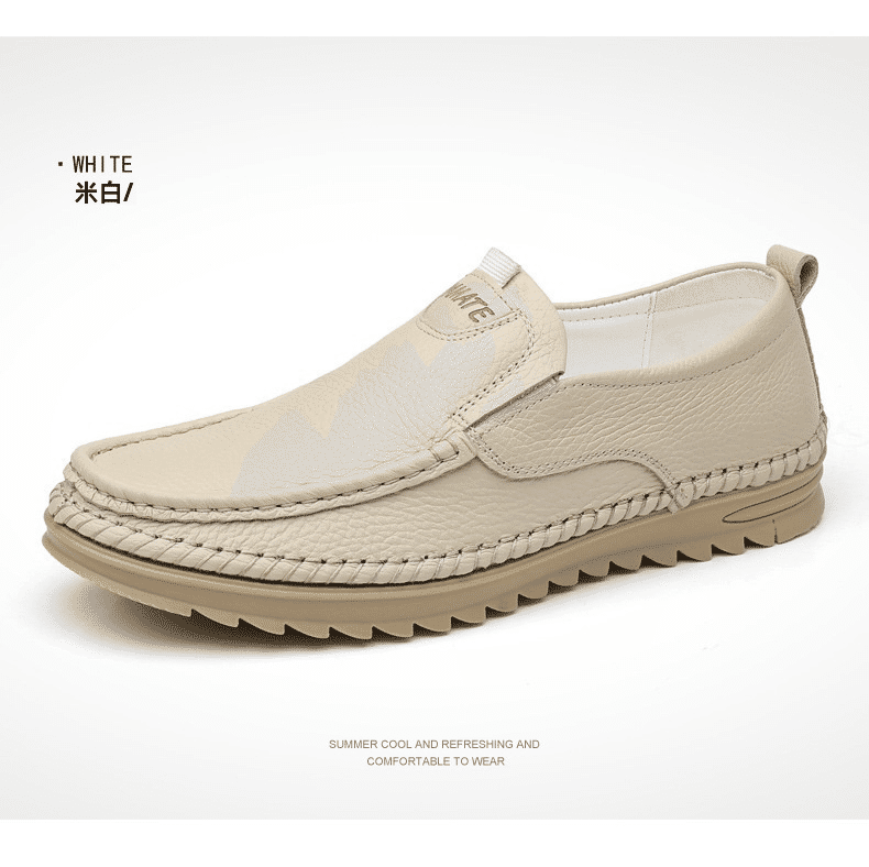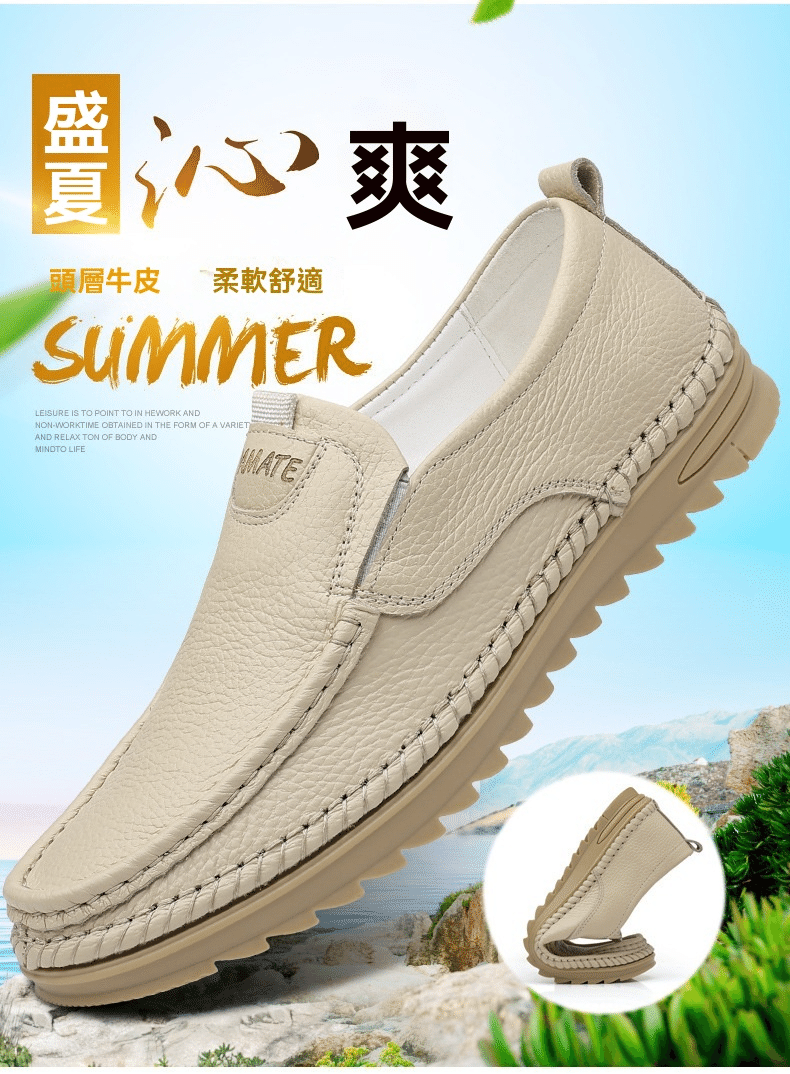 1分鐘前男士頭層牛皮一腳蹬休閒皮鞋 米色