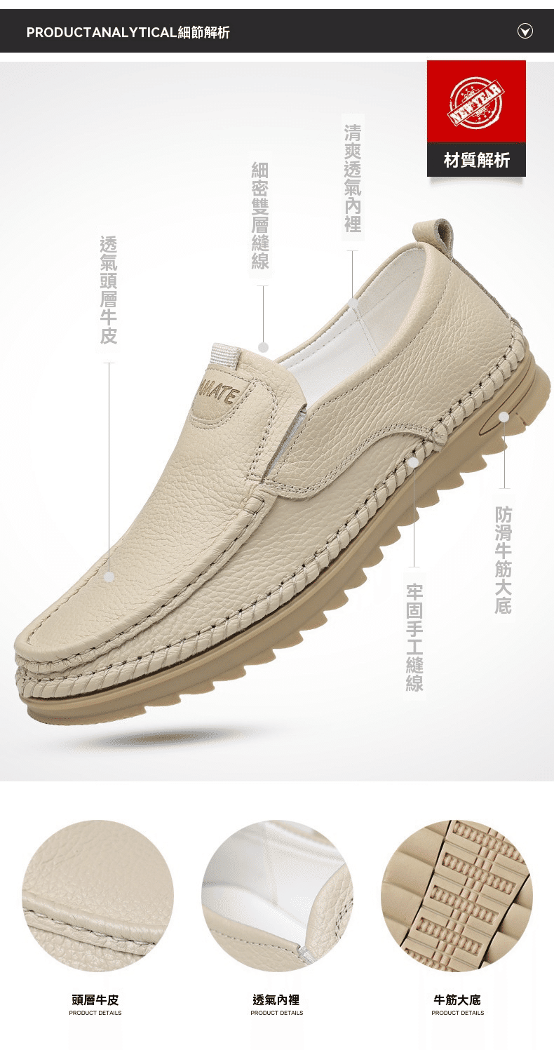 3分鐘前男士頭層牛皮一腳蹬休閒皮鞋 米色