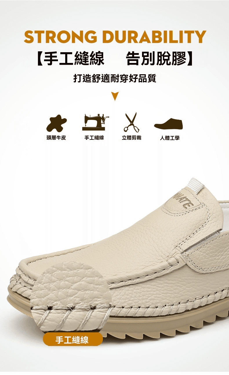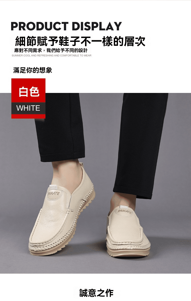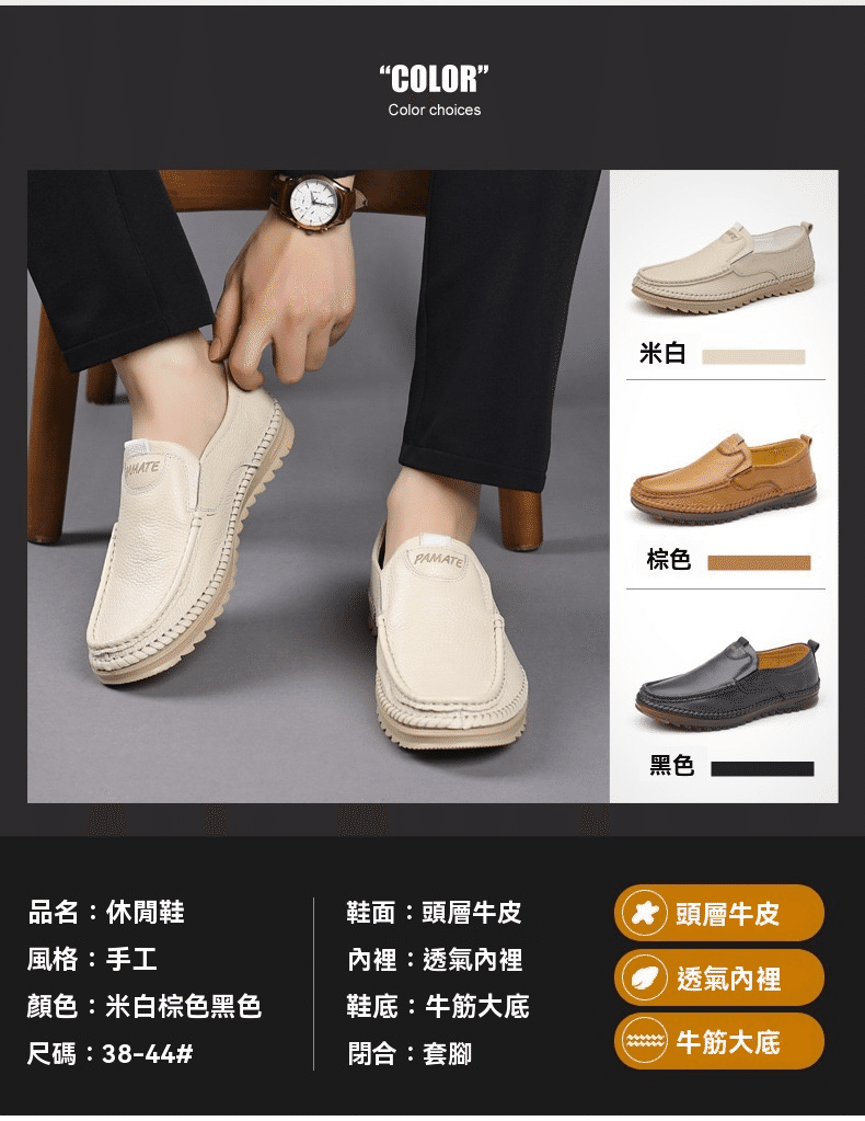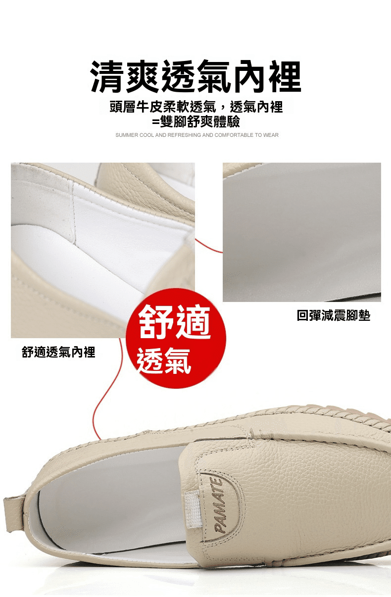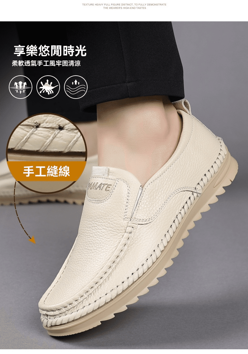 4分鐘前男士頭層牛皮一腳蹬休閒皮鞋 米色