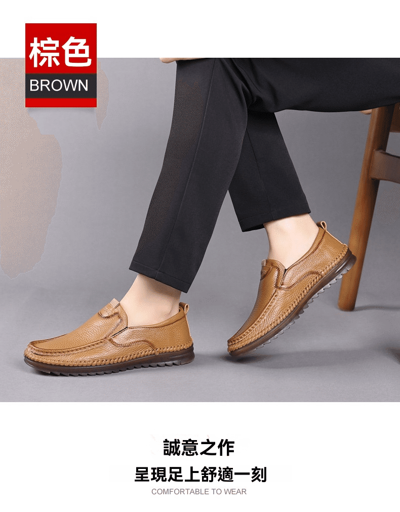 2分鐘前男士頭層牛皮一腳蹬休閒皮鞋 棕色