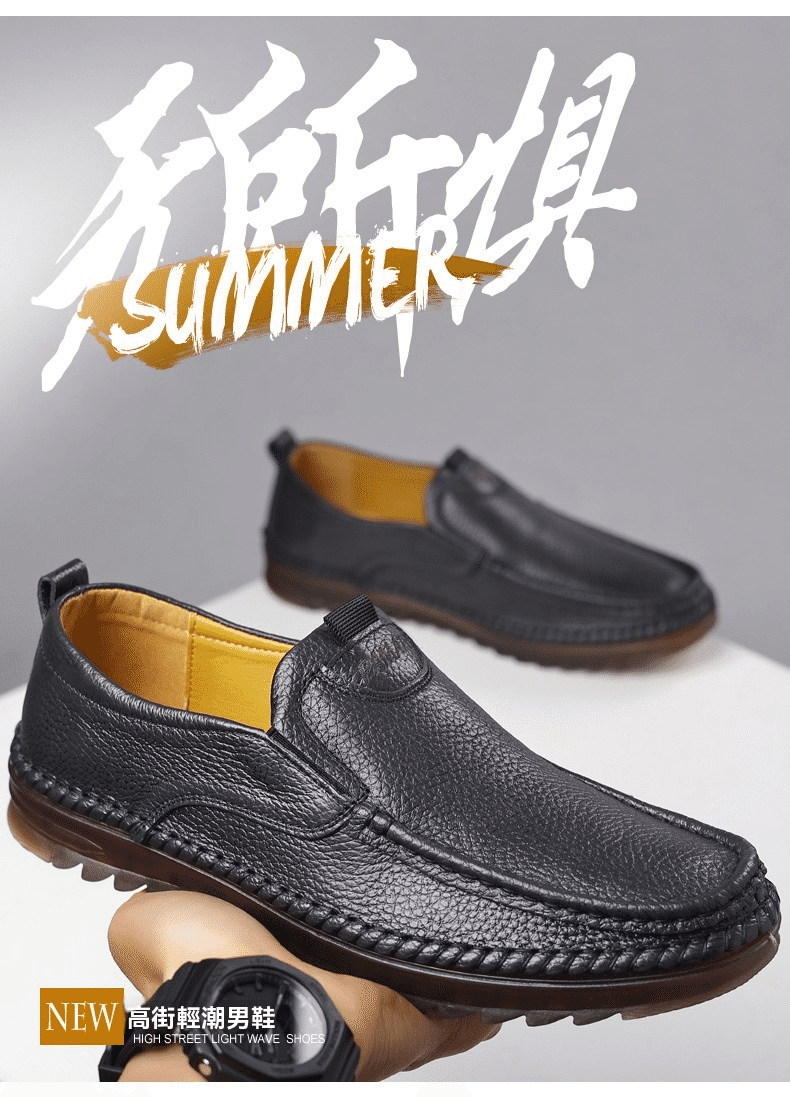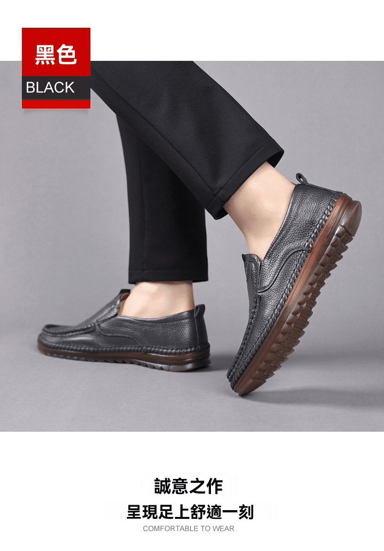 1分鐘前男士頭層牛皮一腳蹬休閒皮鞋 黑色
