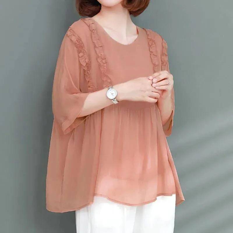 5分鐘前寬鬆遮肉,夏季冰絲雪紡衫 桃粉