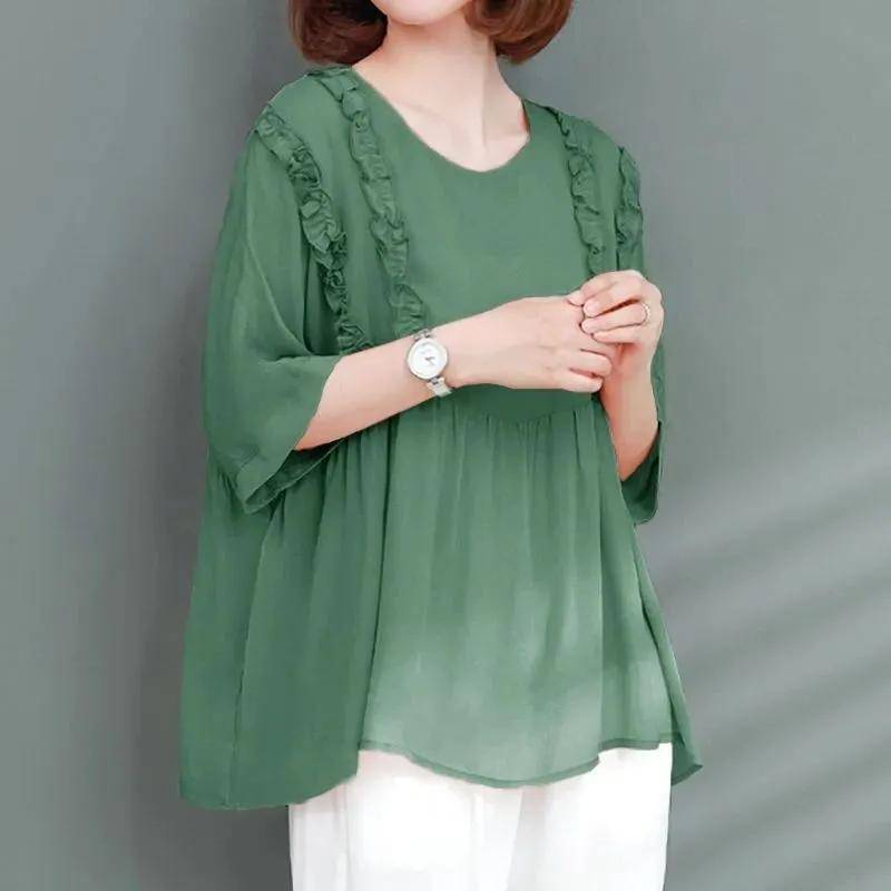 半小時前寬鬆遮肉,夏季冰絲雪紡衫 水綠