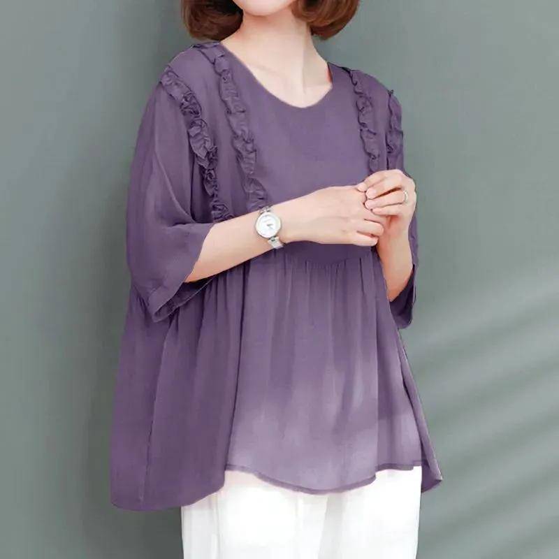 半小時前寬鬆遮肉,夏季冰絲雪紡衫 淺紫