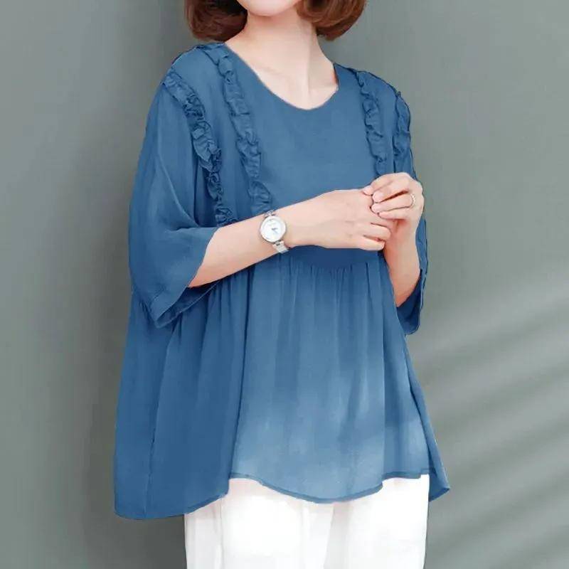 5分鐘前寬鬆遮肉,夏季冰絲雪紡衫 藍色