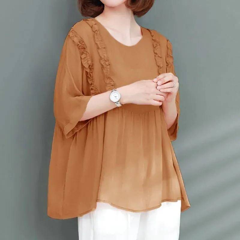 5分鐘前寬鬆遮肉,夏季冰絲雪紡衫 橙色