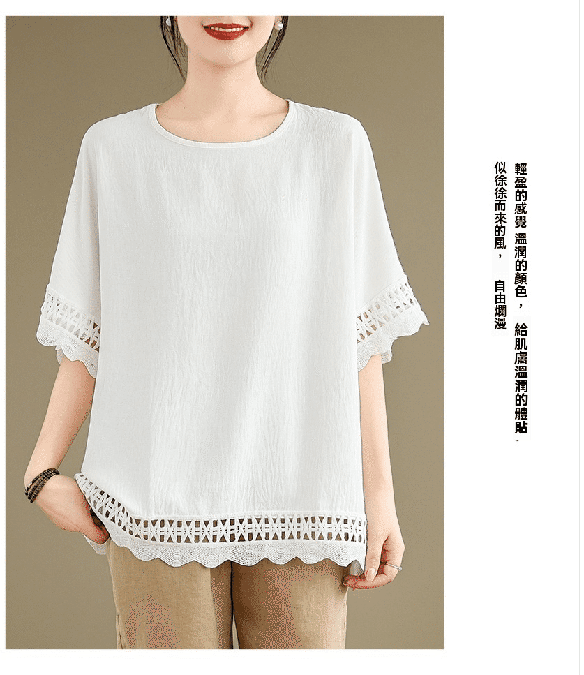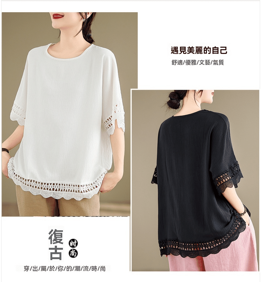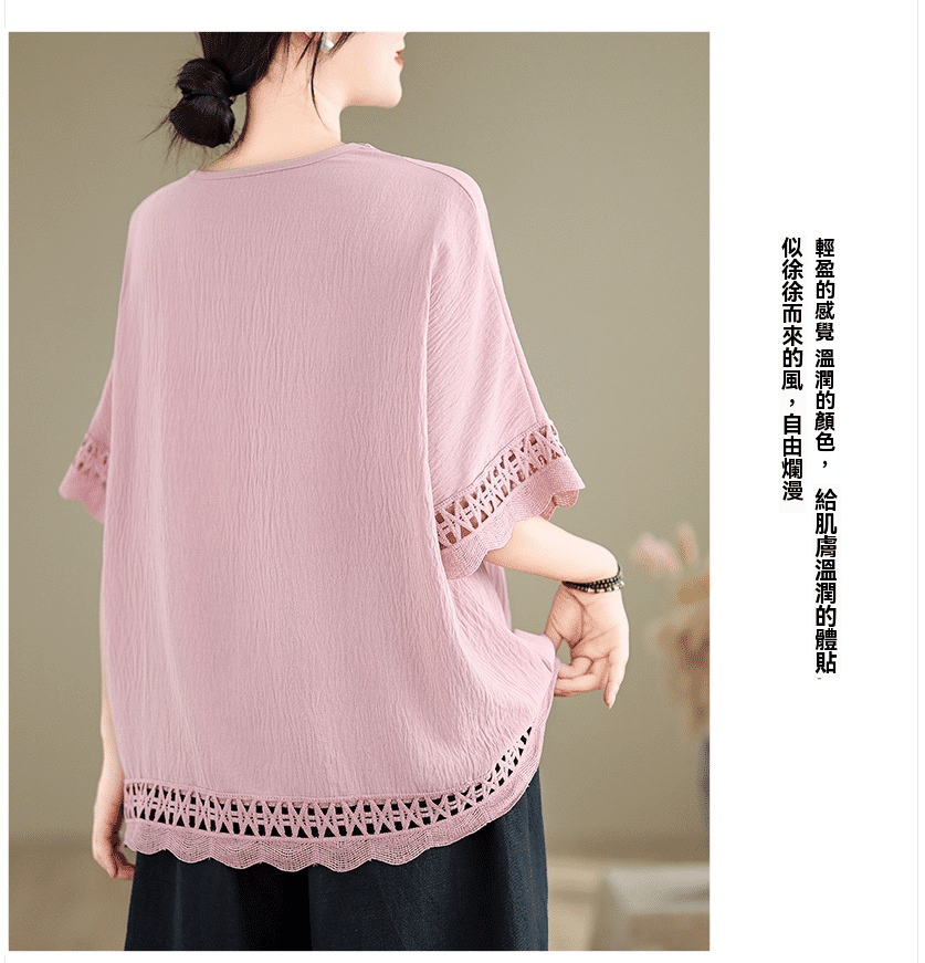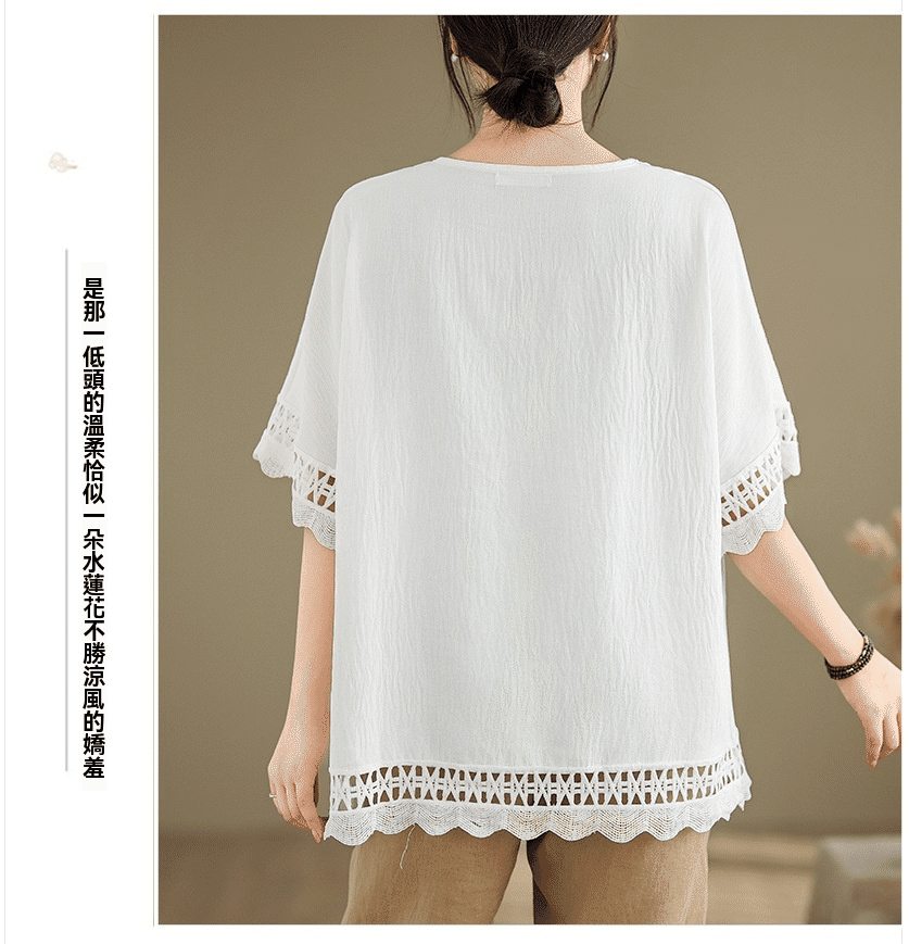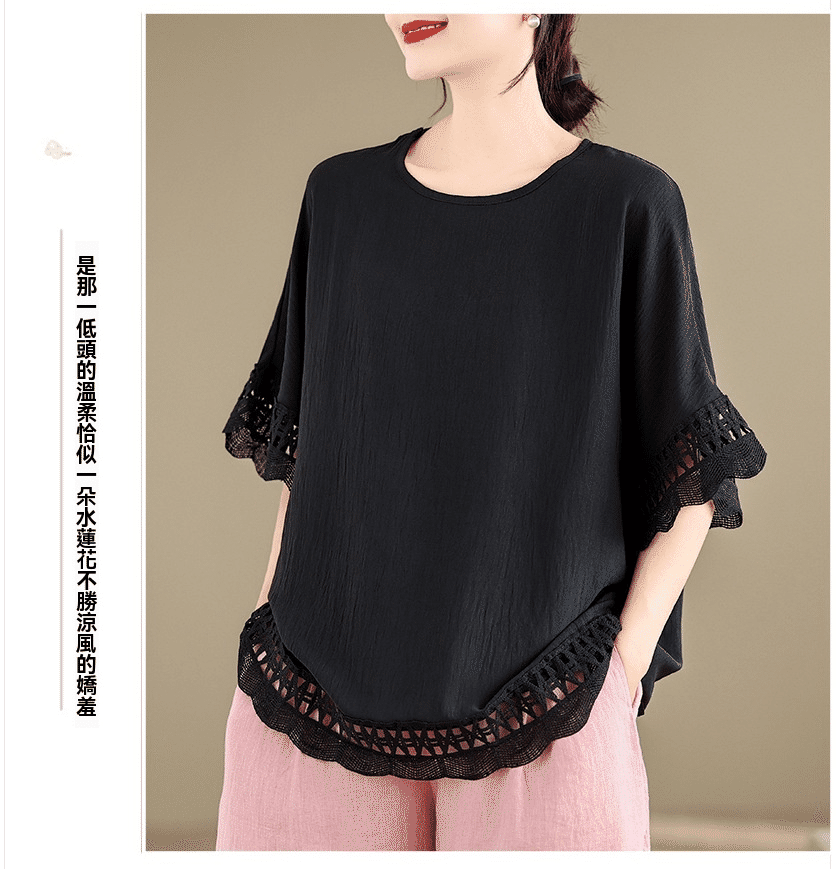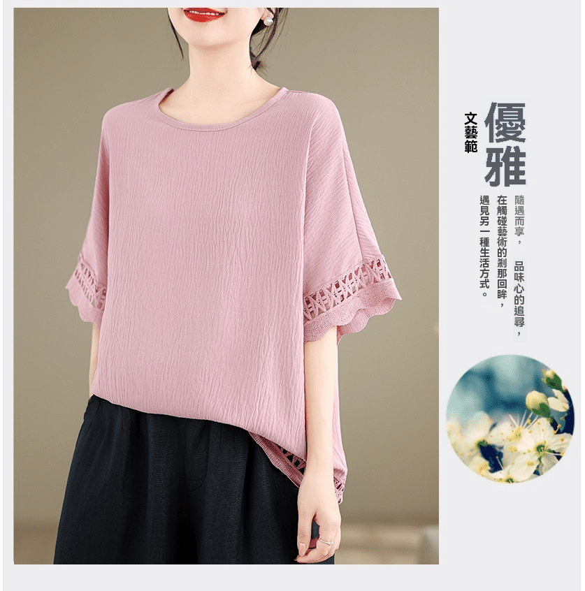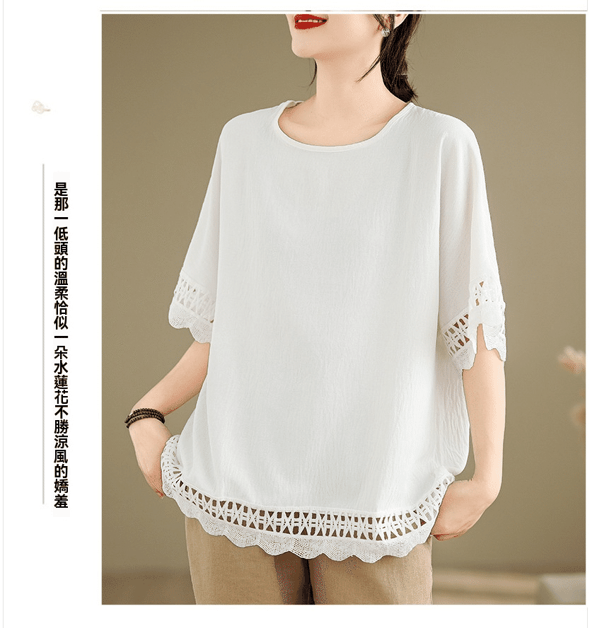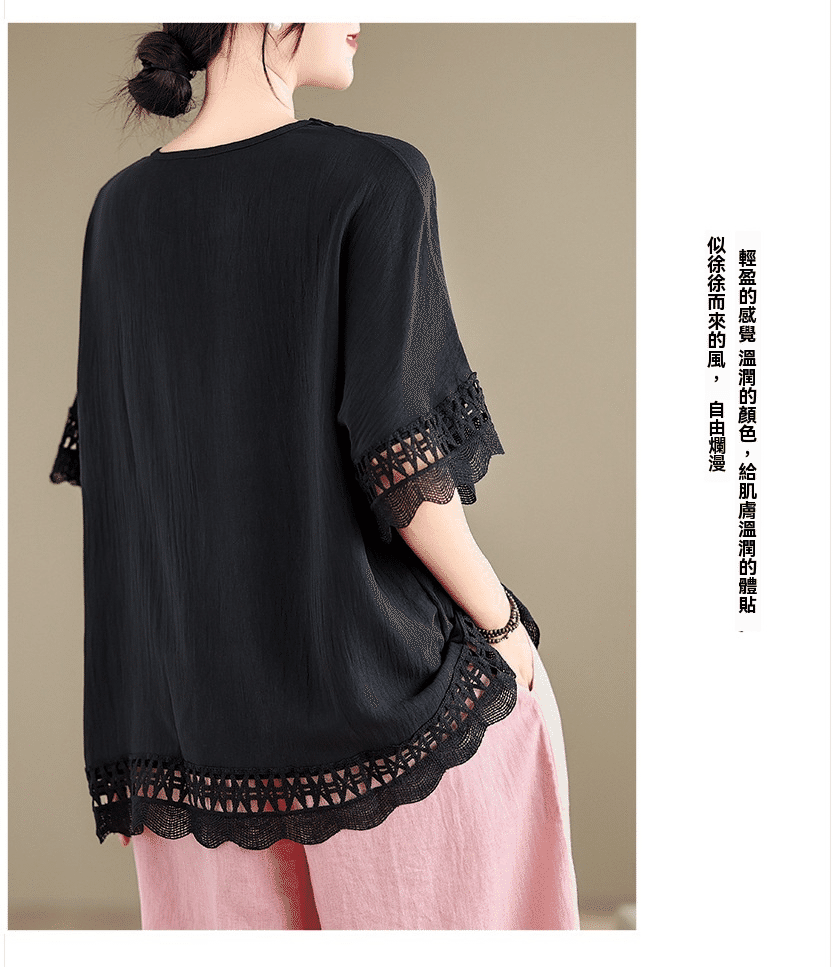 寬鬆文藝蕾絲雪紡衫