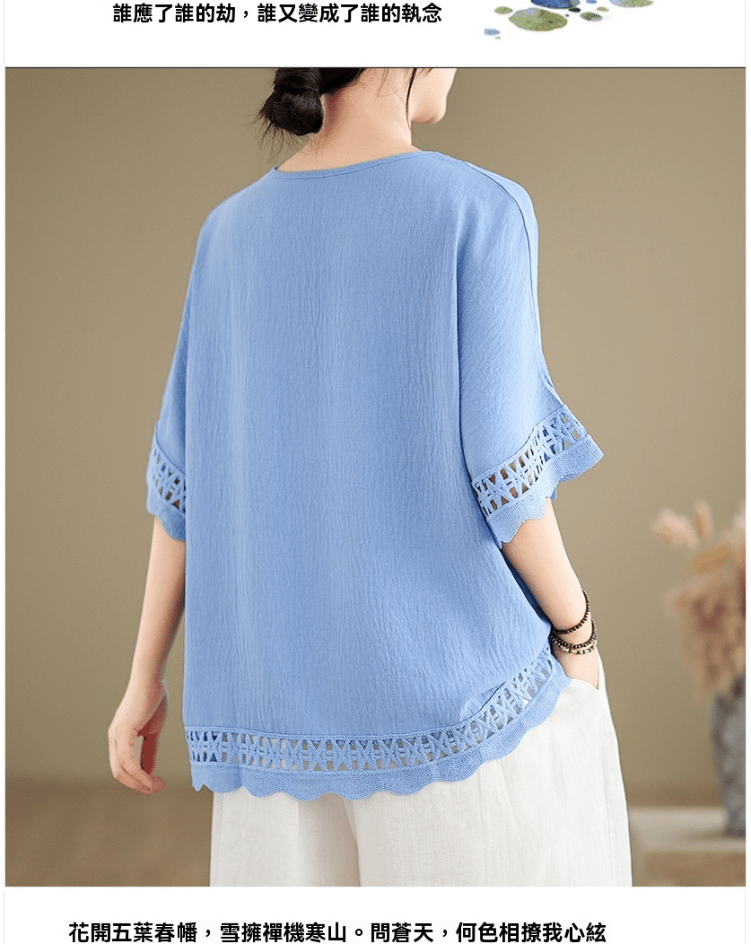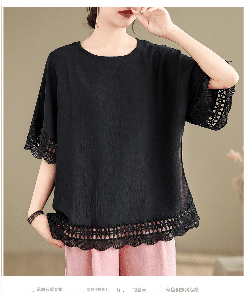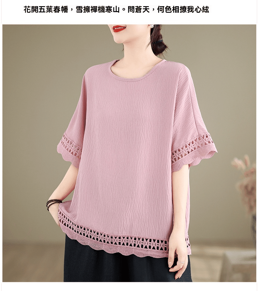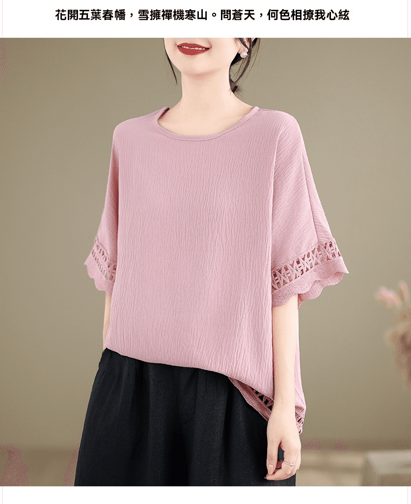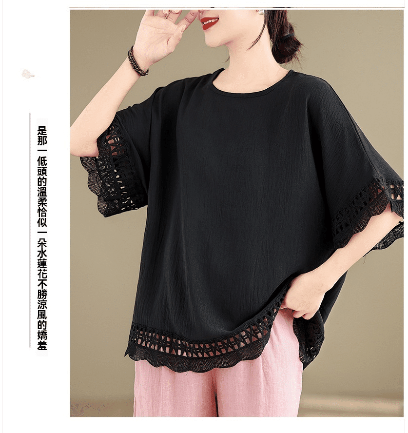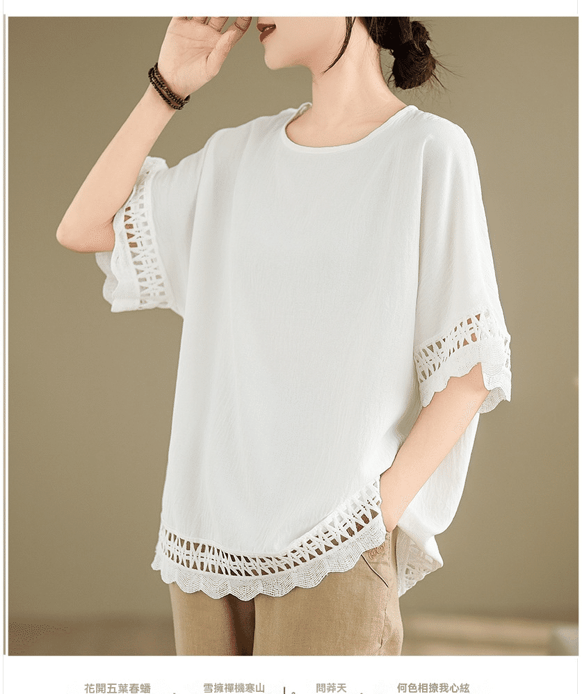 寬鬆文藝蕾絲雪紡衫