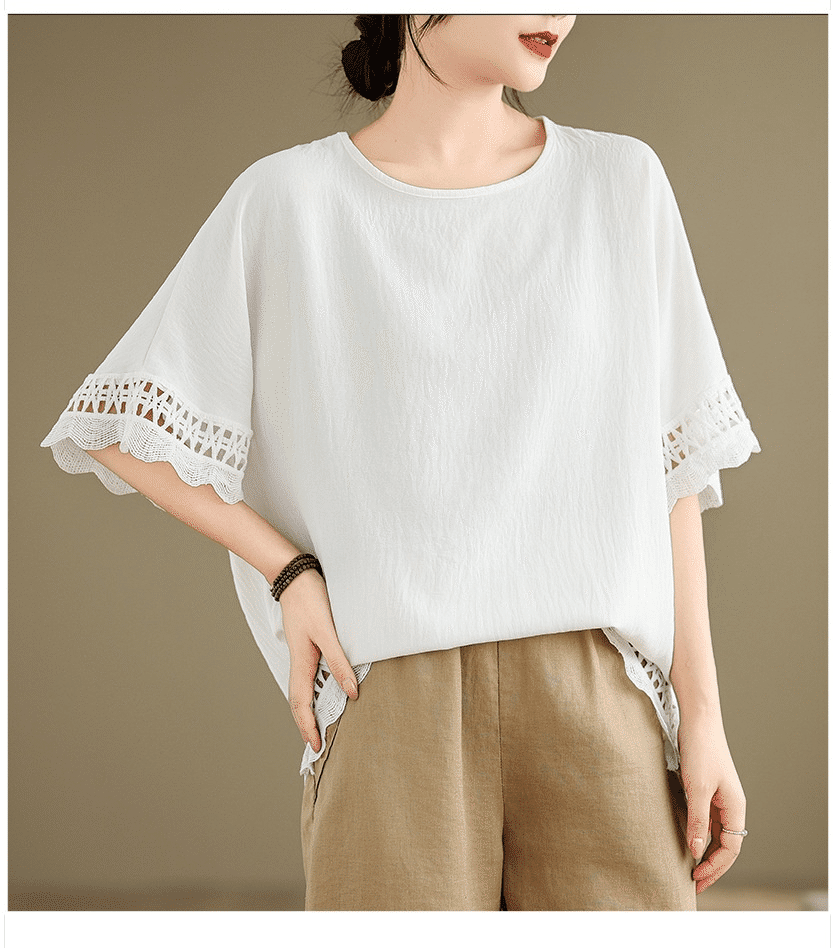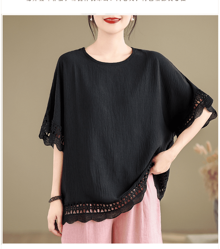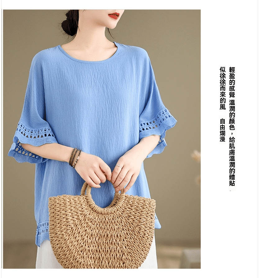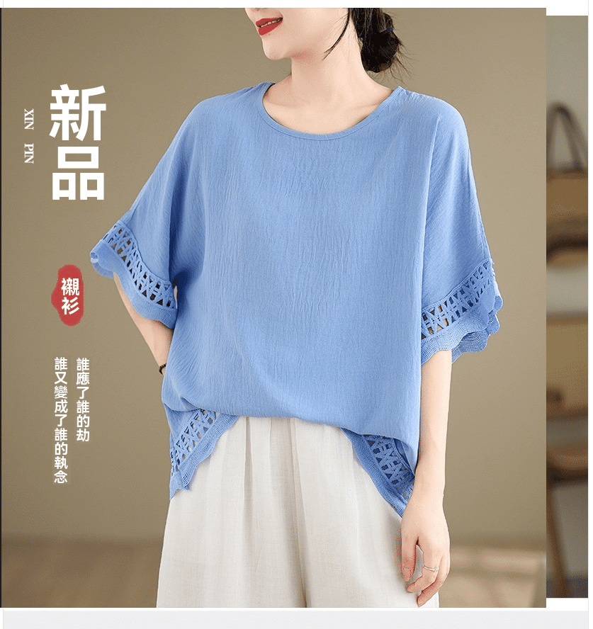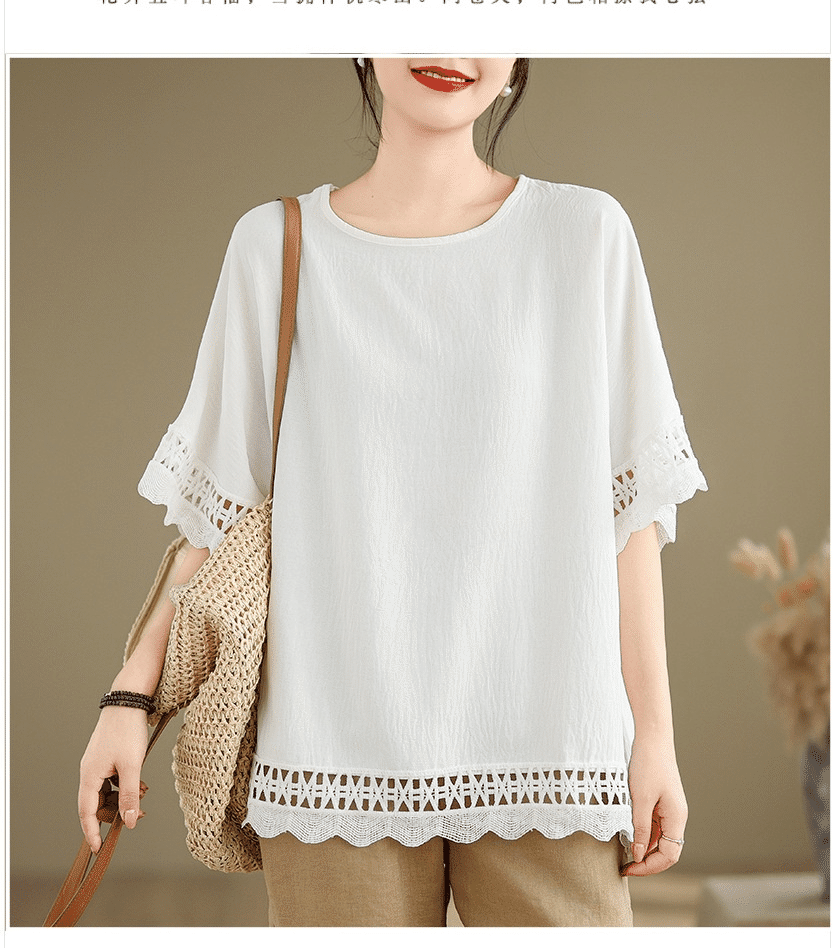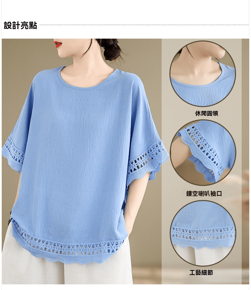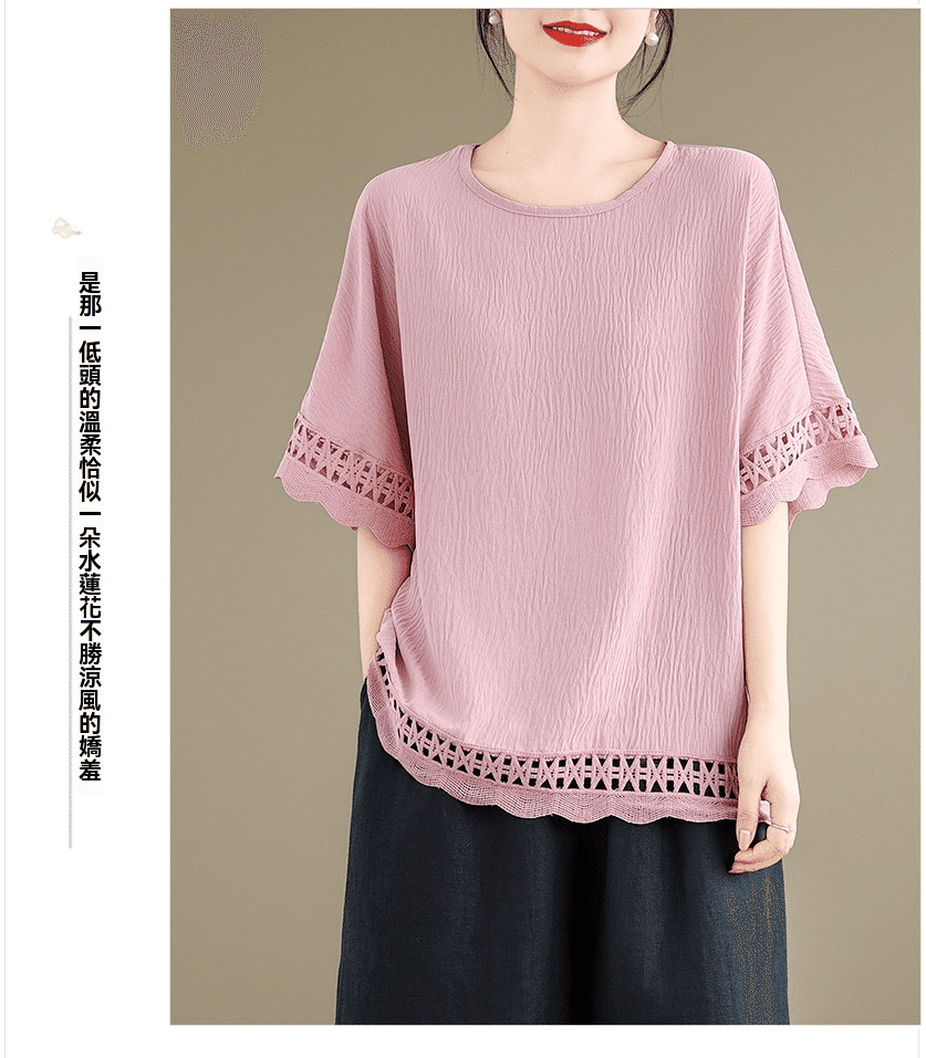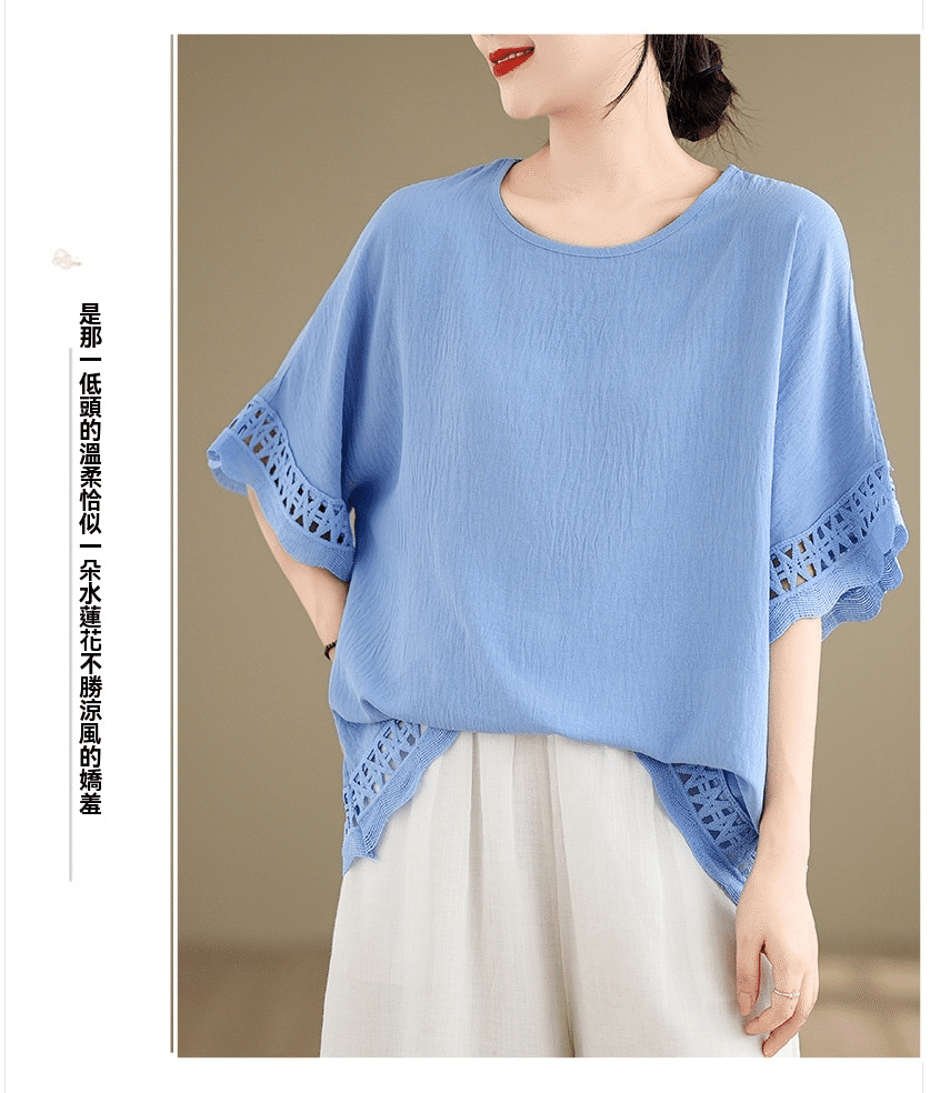 寬鬆文藝蕾絲雪紡衫