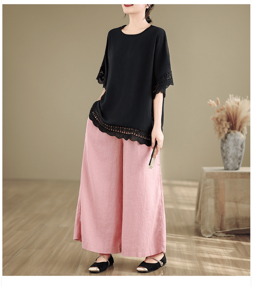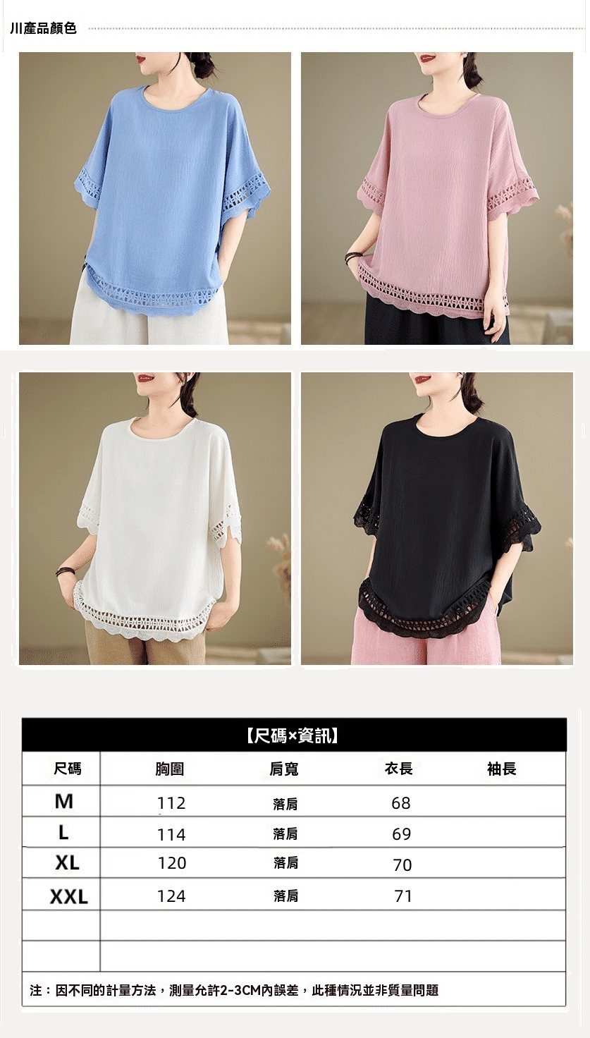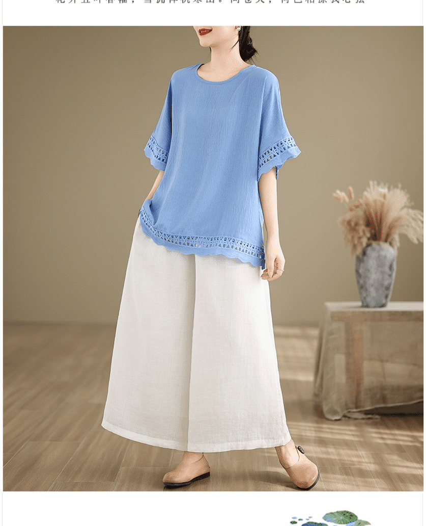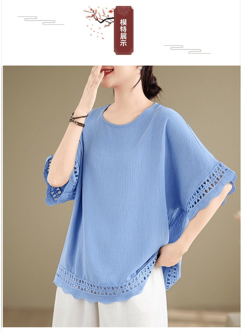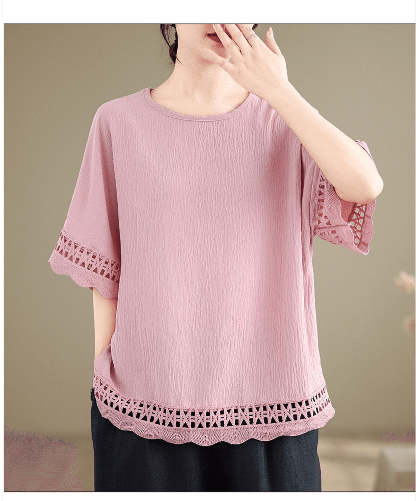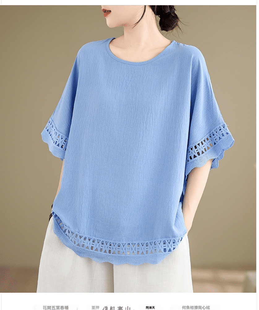 寬鬆文藝蕾絲雪紡衫
