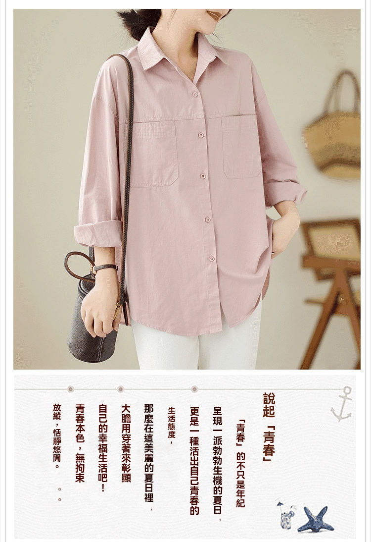 2分鐘前韓版慵懶風寬鬆休閒百搭翻領襯衫 粉色