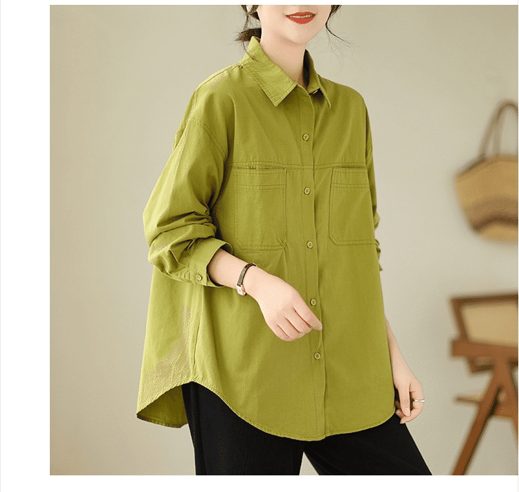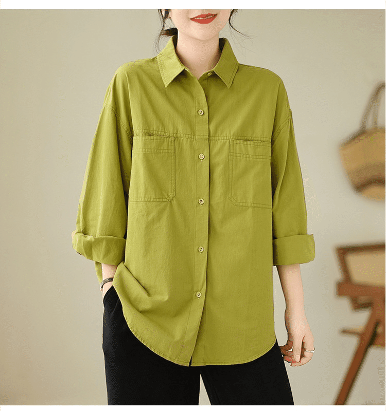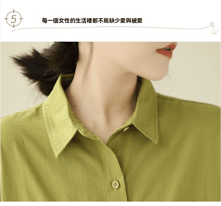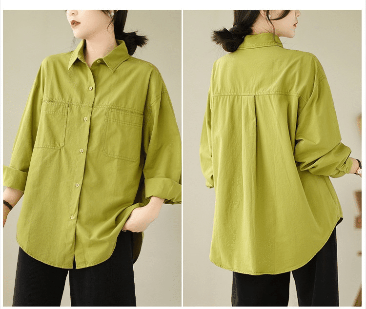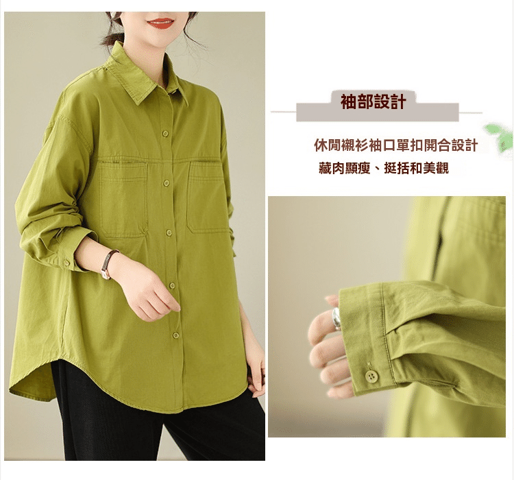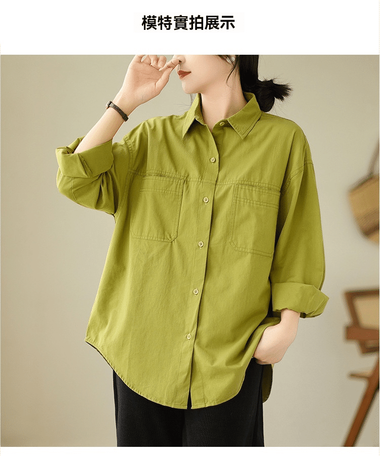 5分鐘前【強烈推薦!超級顯白!】韓版寬鬆休閒百搭翻領襯衫 果綠色