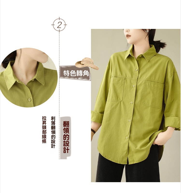 3分鐘前【強烈推薦!超級顯白!】韓版寬鬆休閒百搭翻領襯衫 果綠色
