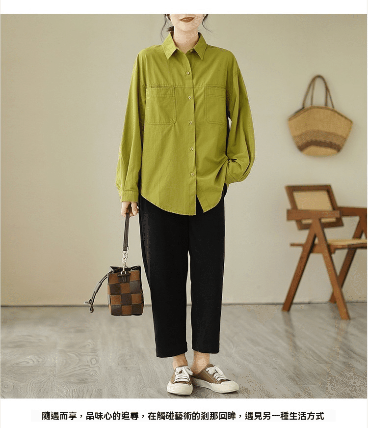 1分鐘前【強烈推薦!超級顯白!】韓版寬鬆休閒百搭翻領襯衫 果綠色