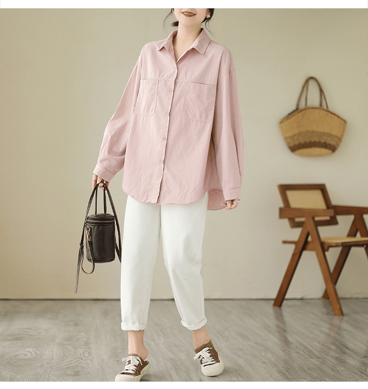 5分鐘前韓版慵懶風寬鬆休閒百搭翻領襯衫 粉色