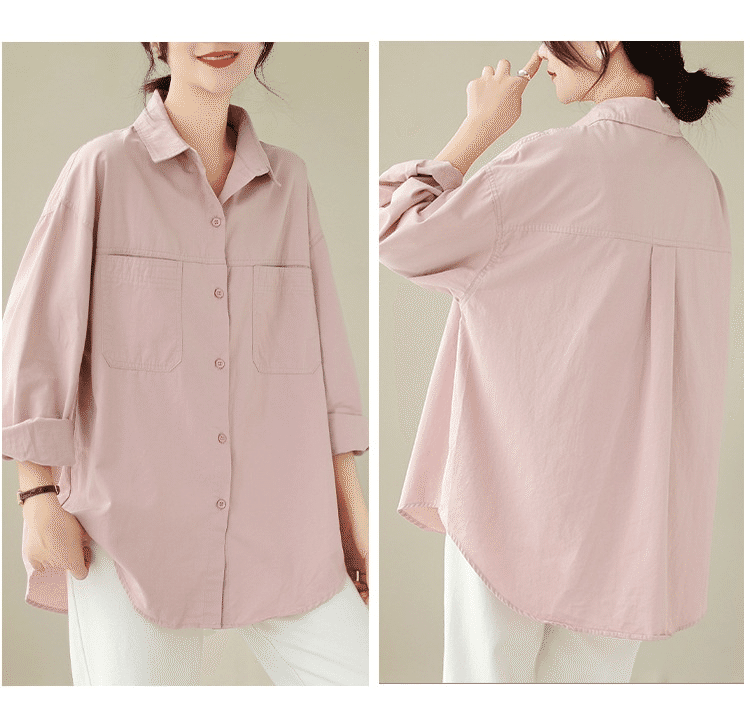 1分鐘前韓版慵懶風寬鬆休閒百搭翻領襯衫 粉色