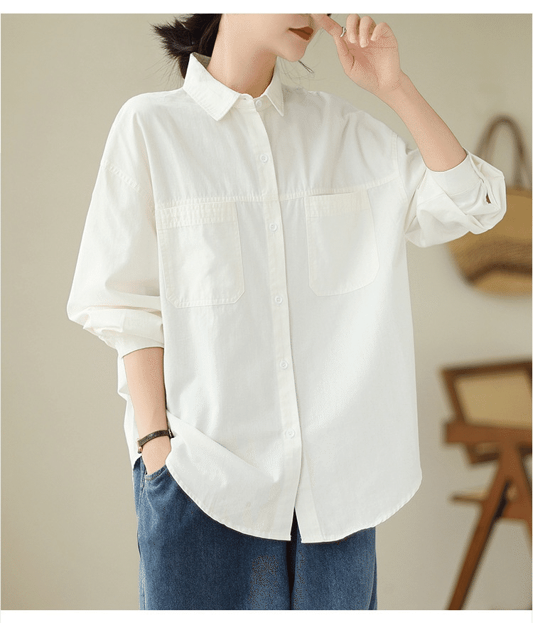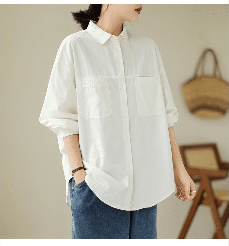 2分鐘前韓版慵懶風寬鬆休閒百搭翻領襯衫 米色