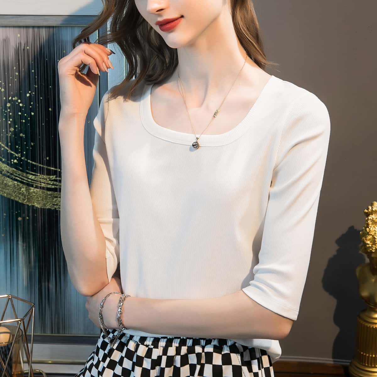 1分鐘前2025年新款新疆棉u領中袖打底衫 白色一件