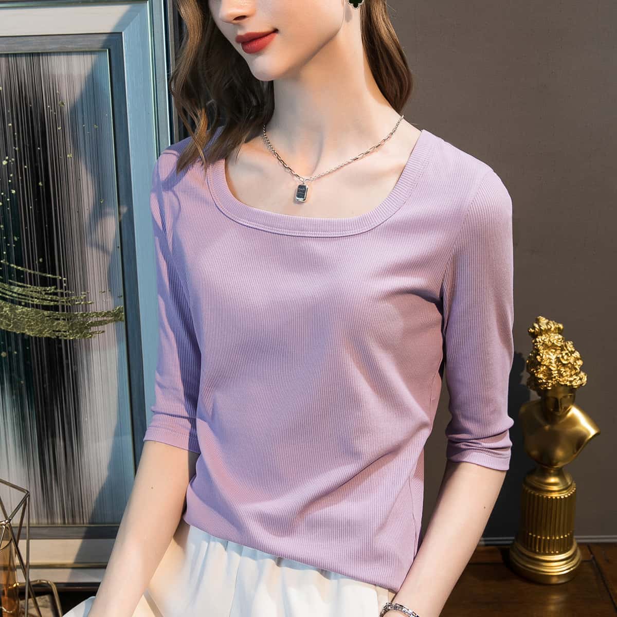 1分鐘前2025年新款新疆棉u領中袖打底衫 紫羅蘭一件