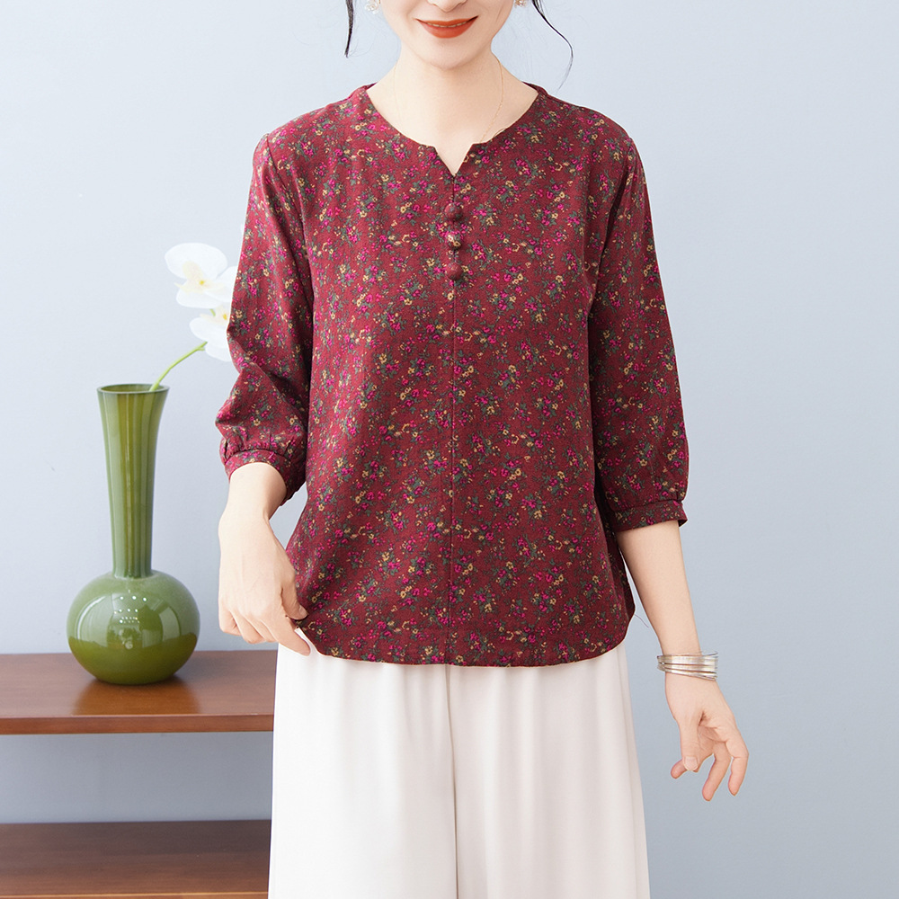 1分鐘前文藝小碎花棉麻七分袖 一件 紅色小花
