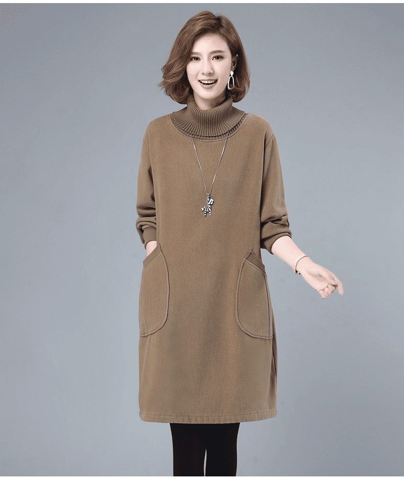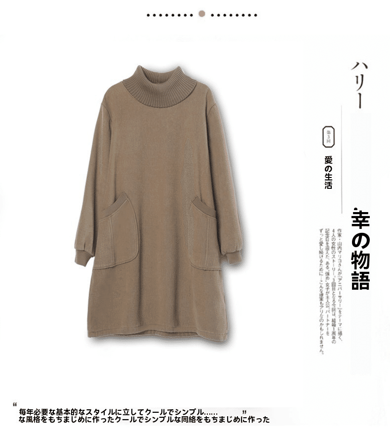 2分鐘前秋冬新款寬鬆大碼顯瘦高領打底衛衣裙 卡其色