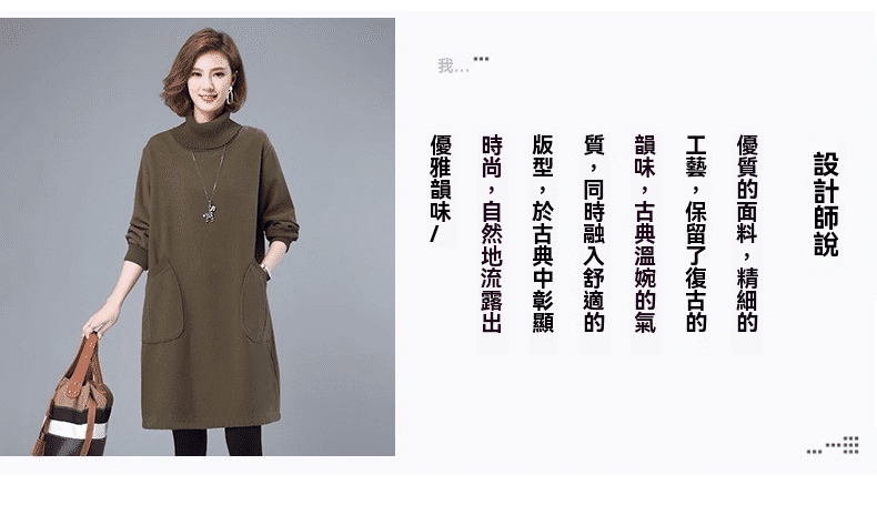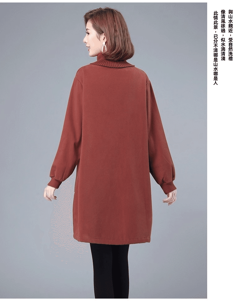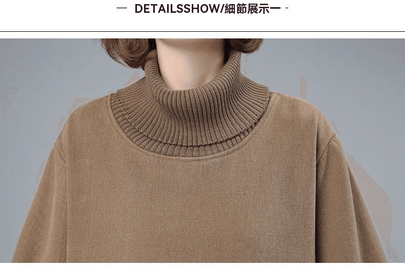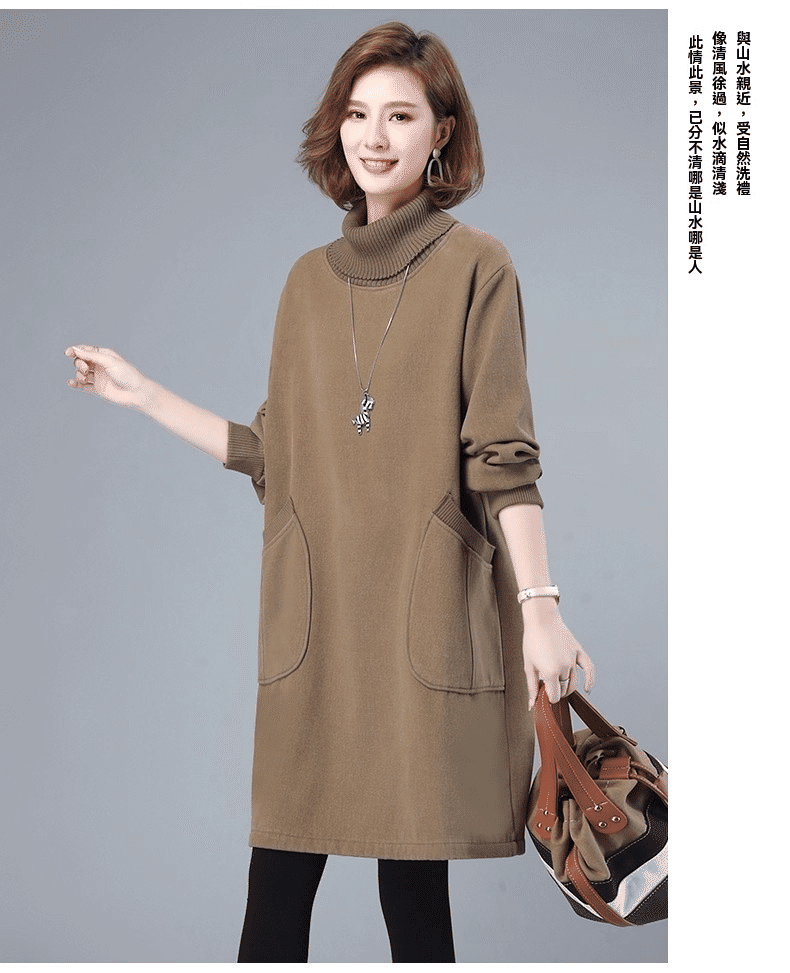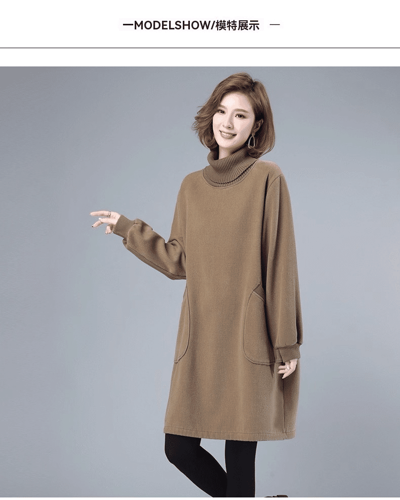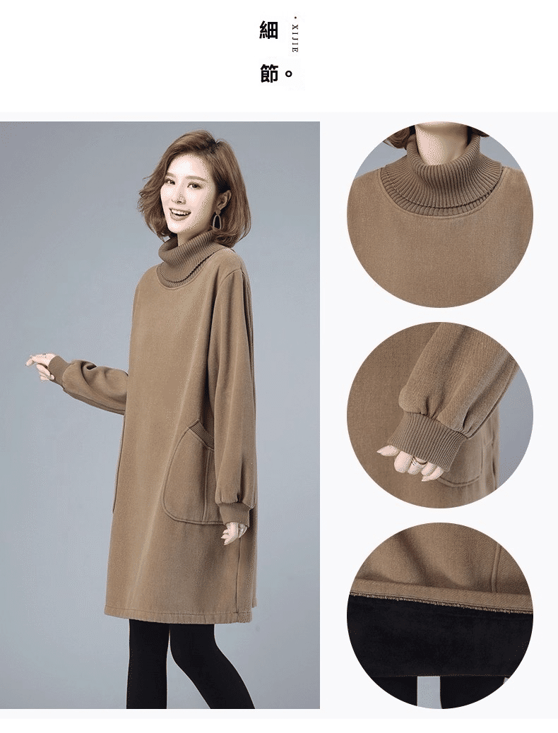 1分鐘前秋冬新款寬鬆大碼顯瘦高領打底衛衣裙 卡其色