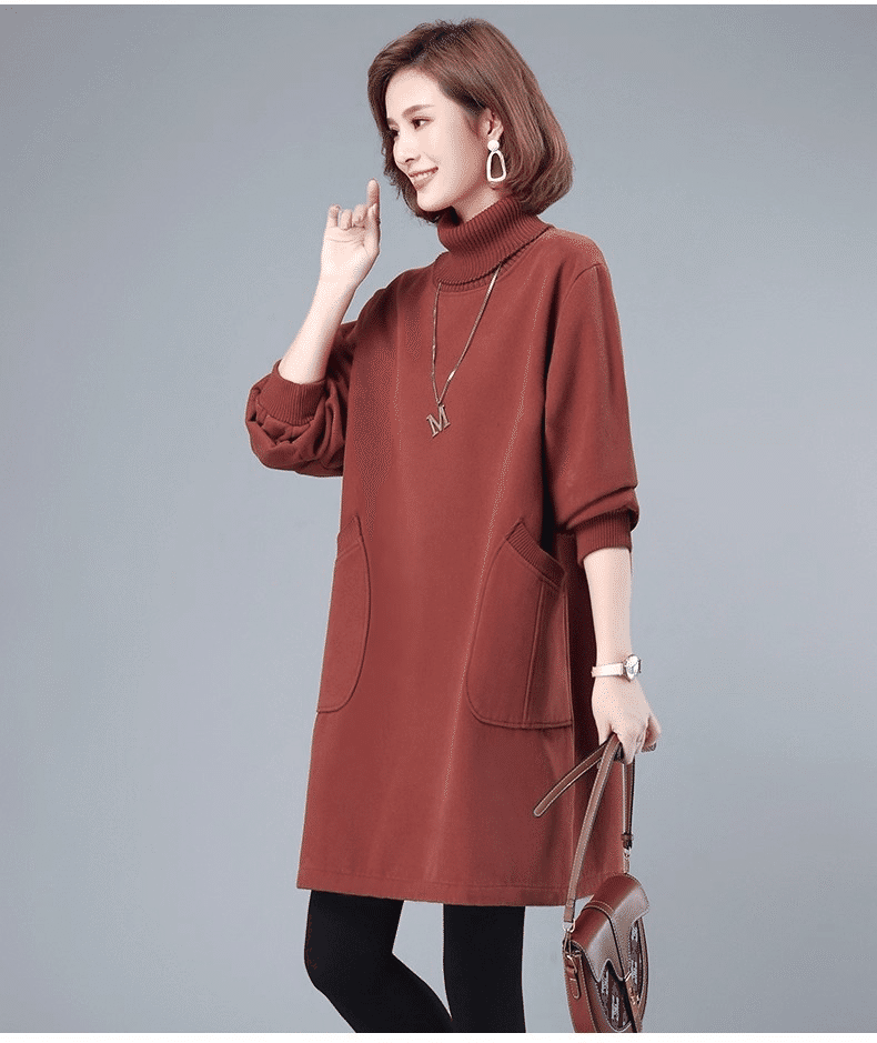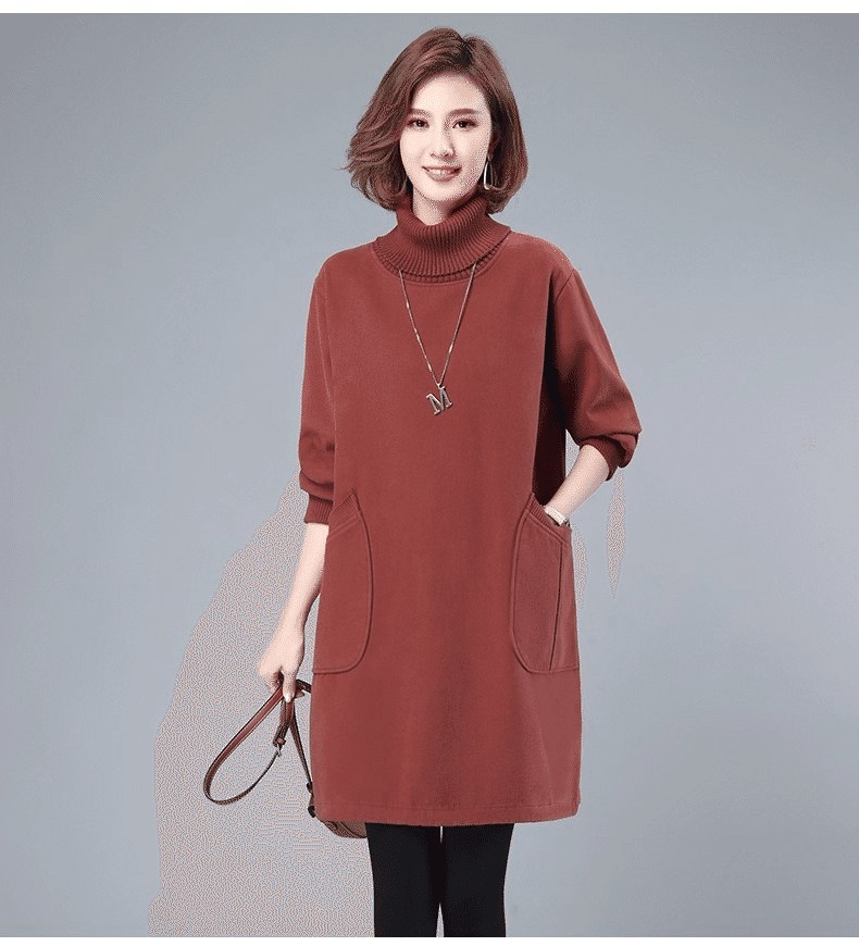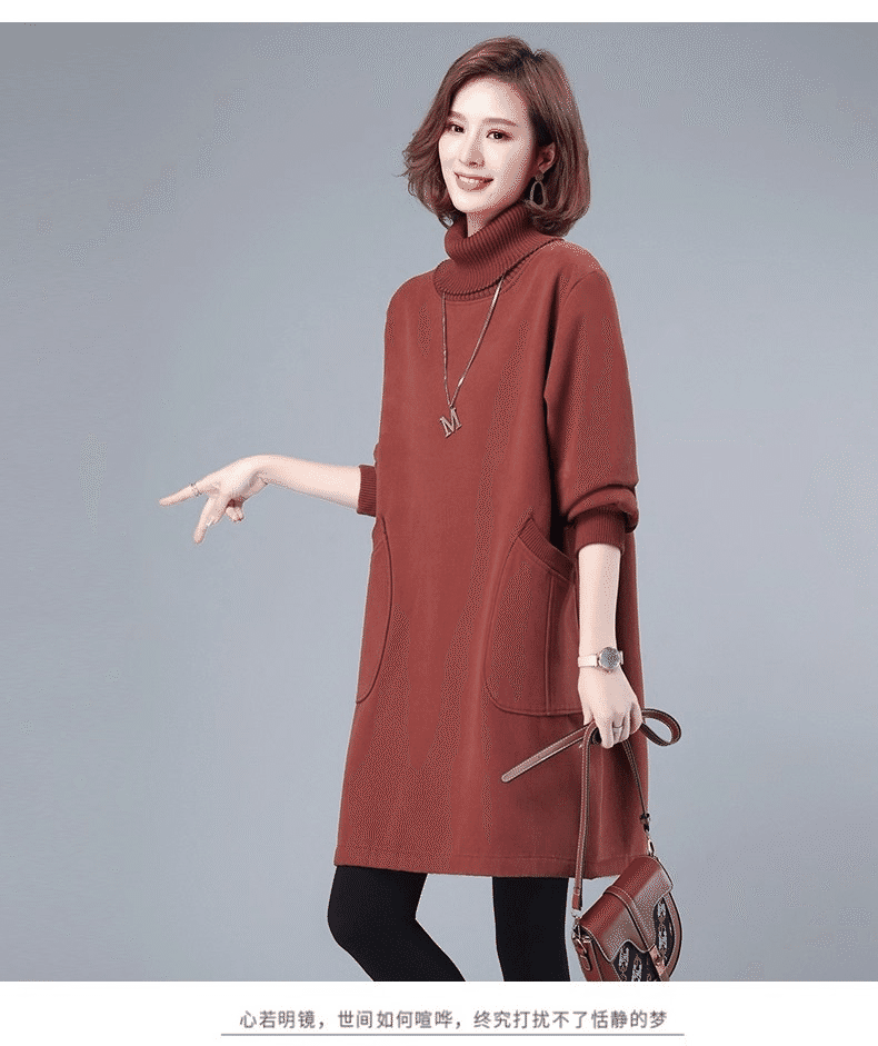 2分鐘前秋冬新款寬鬆大碼顯瘦高領打底衛衣裙 橘紅色