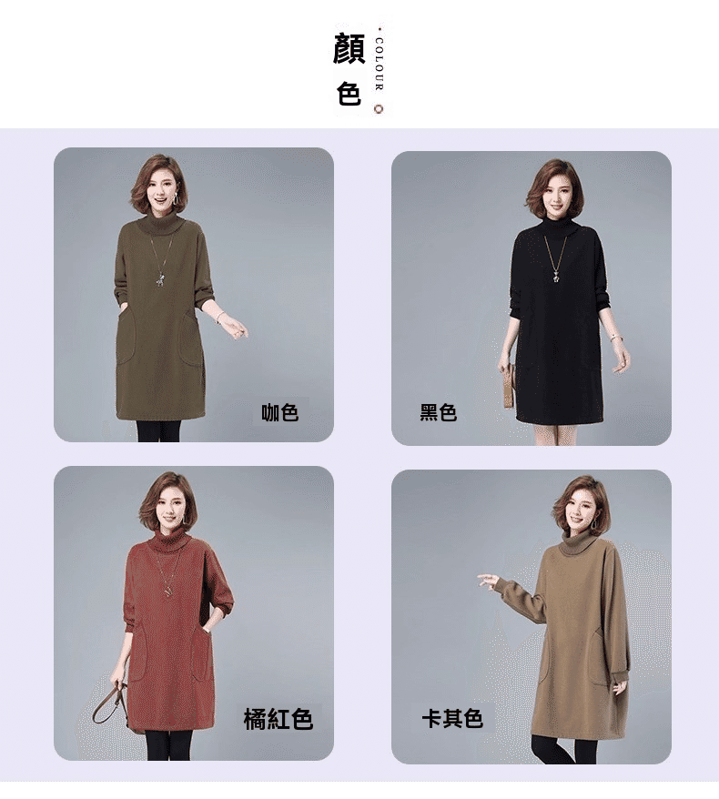 4分鐘前秋冬新款寬鬆大碼顯瘦高領打底衛衣裙 卡其色