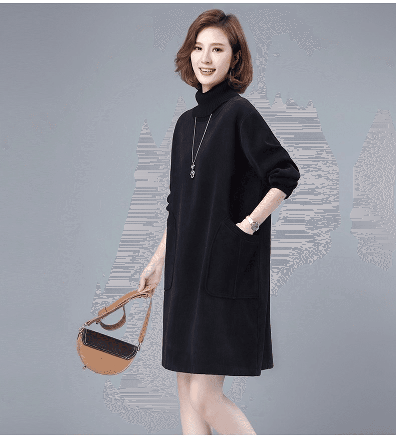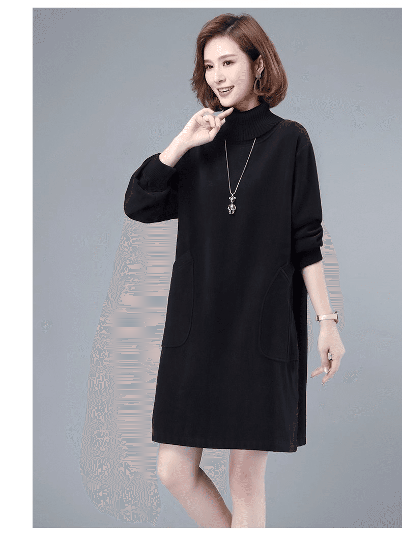 2分鐘前秋冬新款寬鬆大碼顯瘦高領打底衛衣裙 黑色