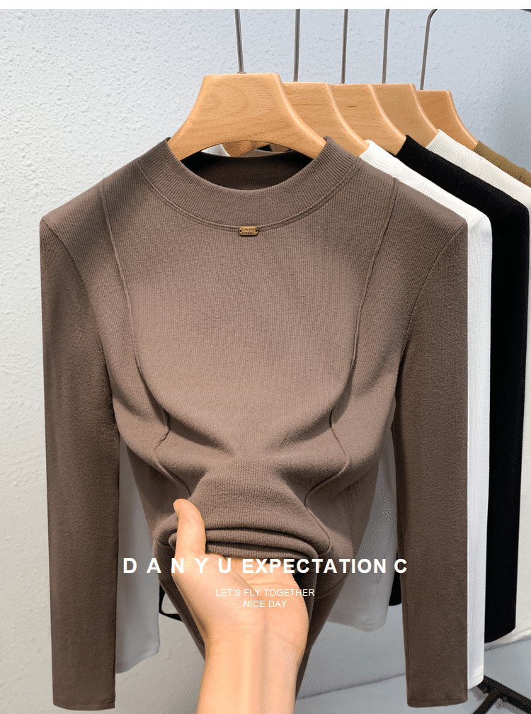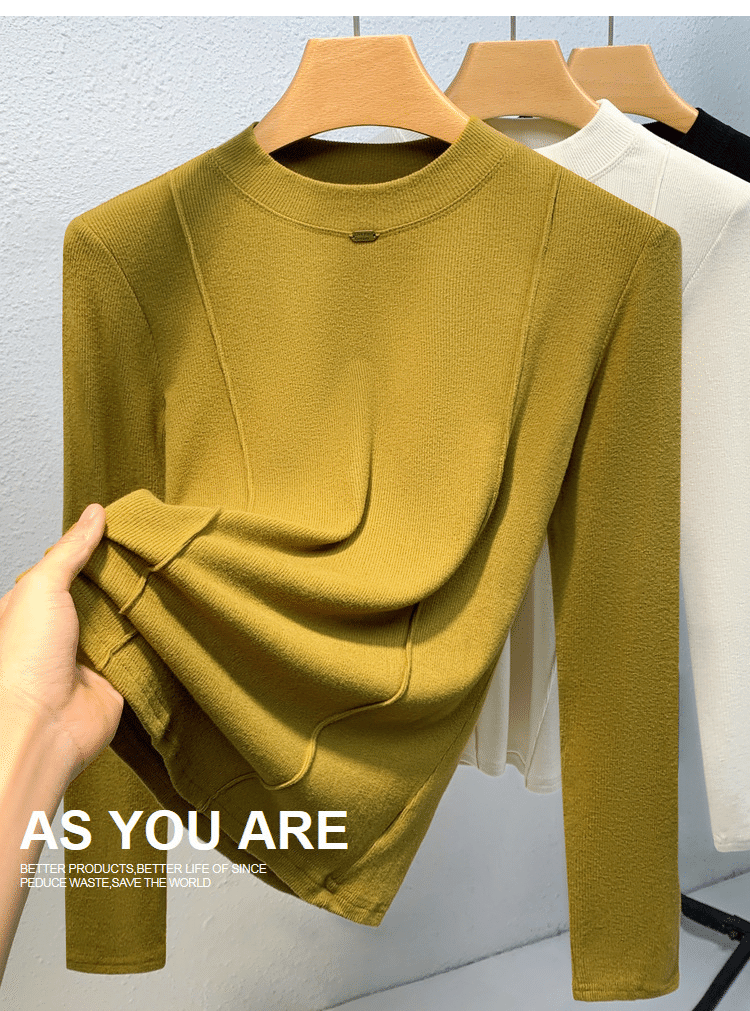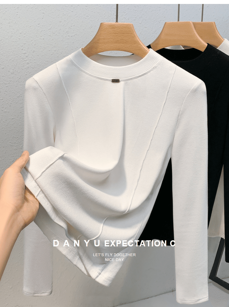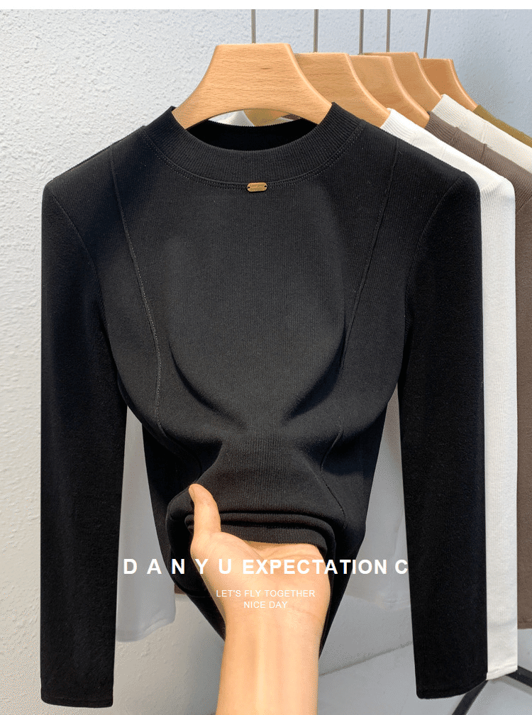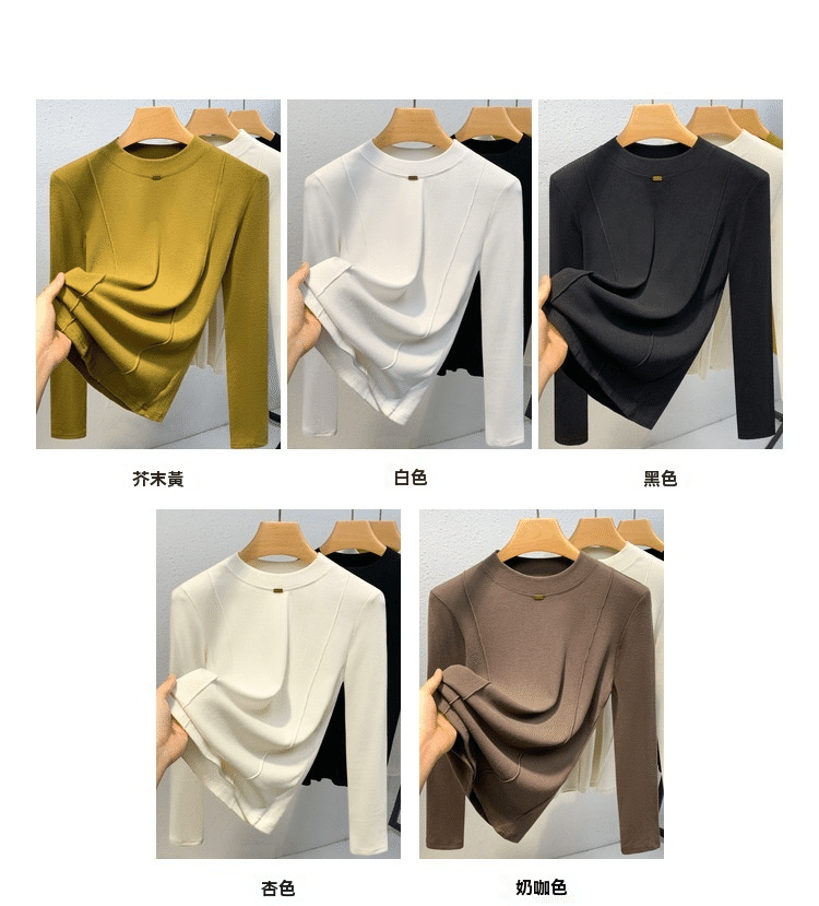 秋冬百搭設計感魚骨線德絨打底衫
