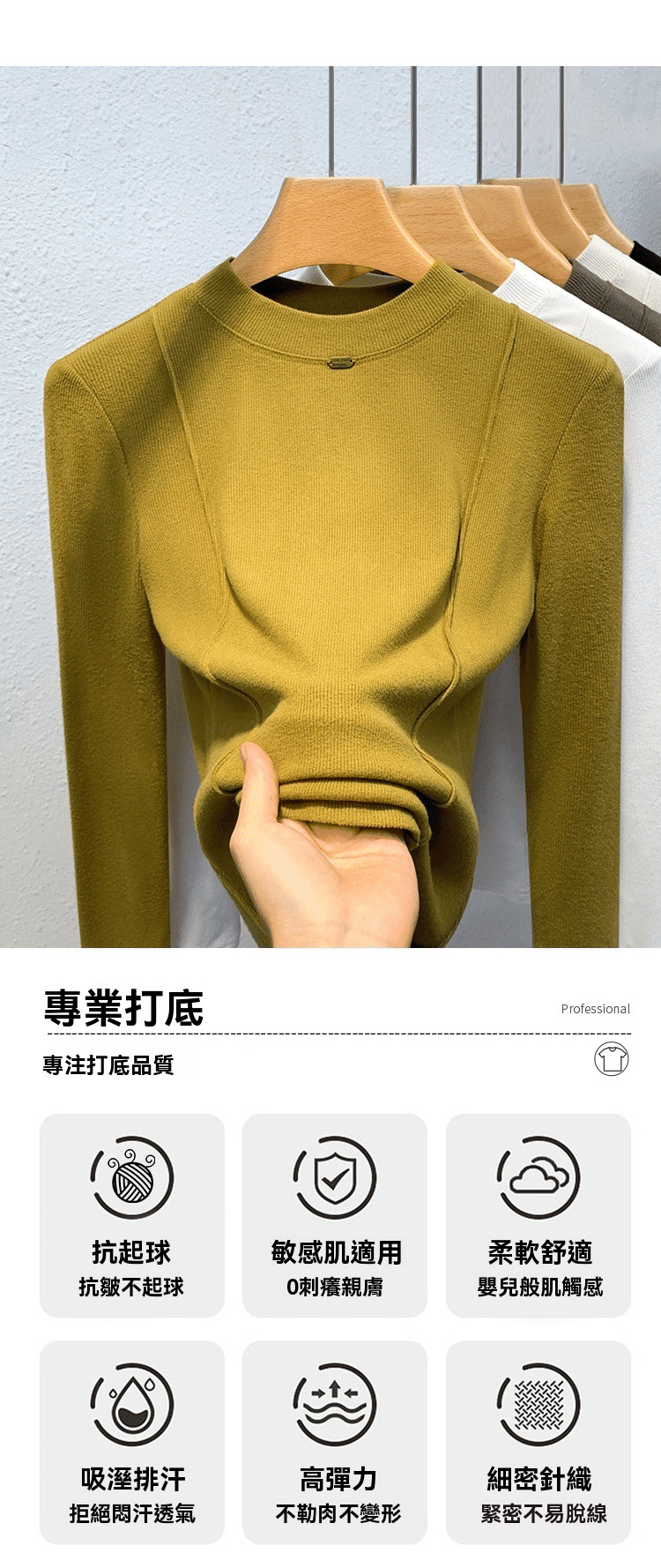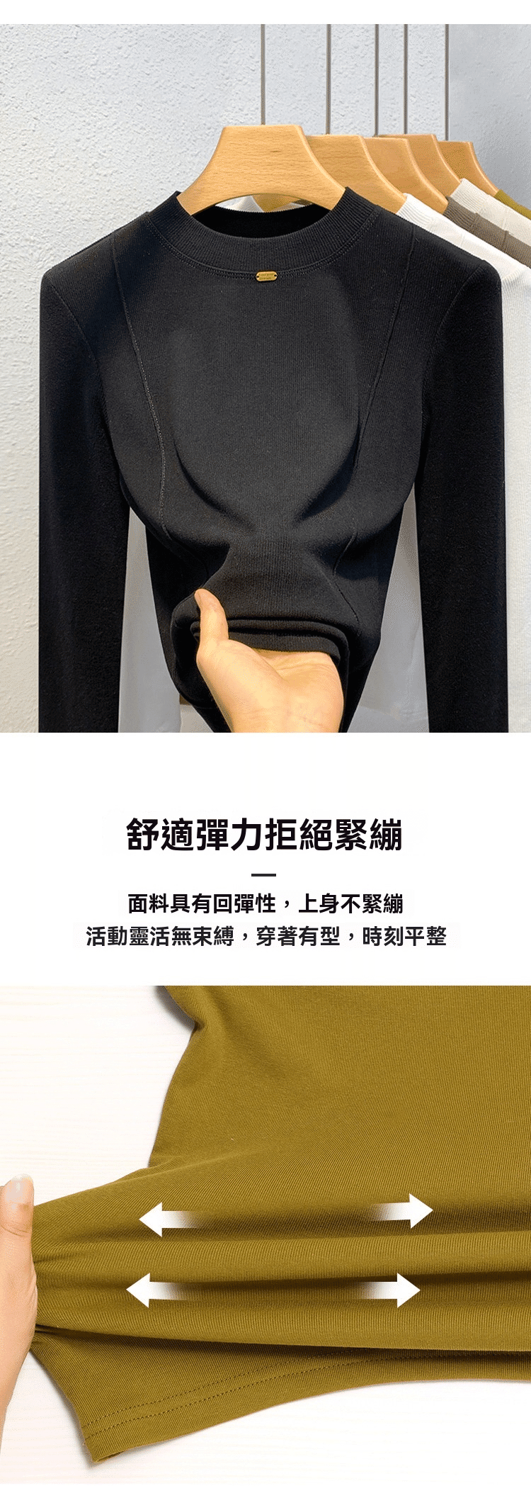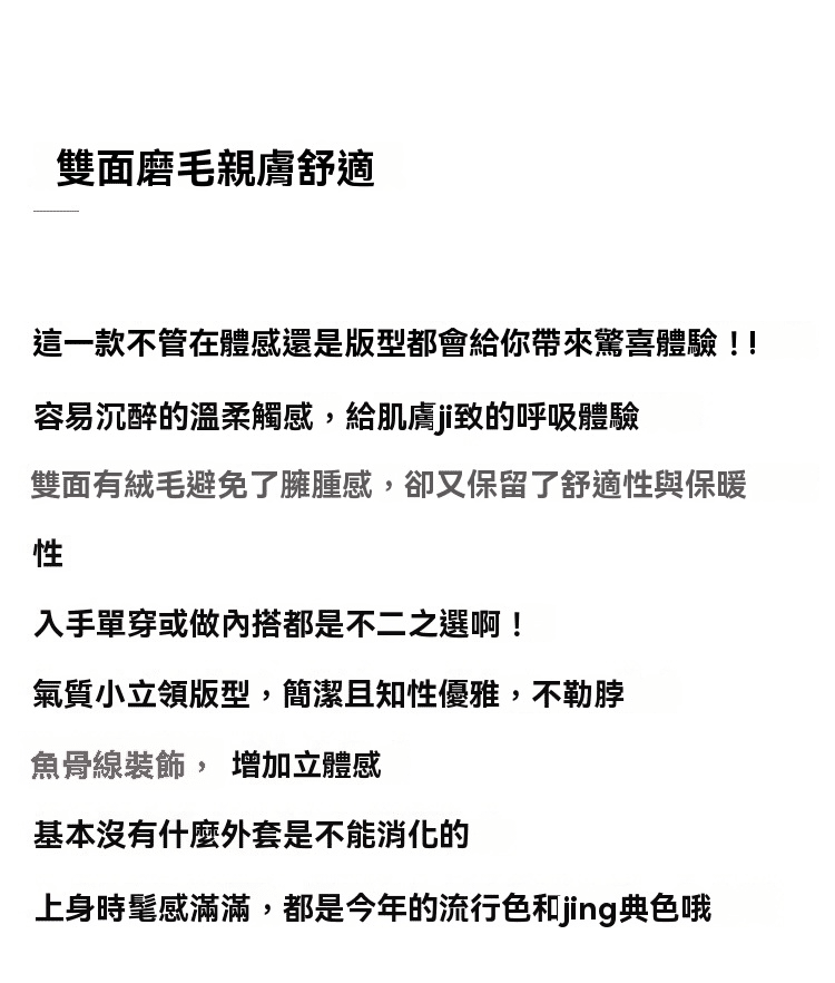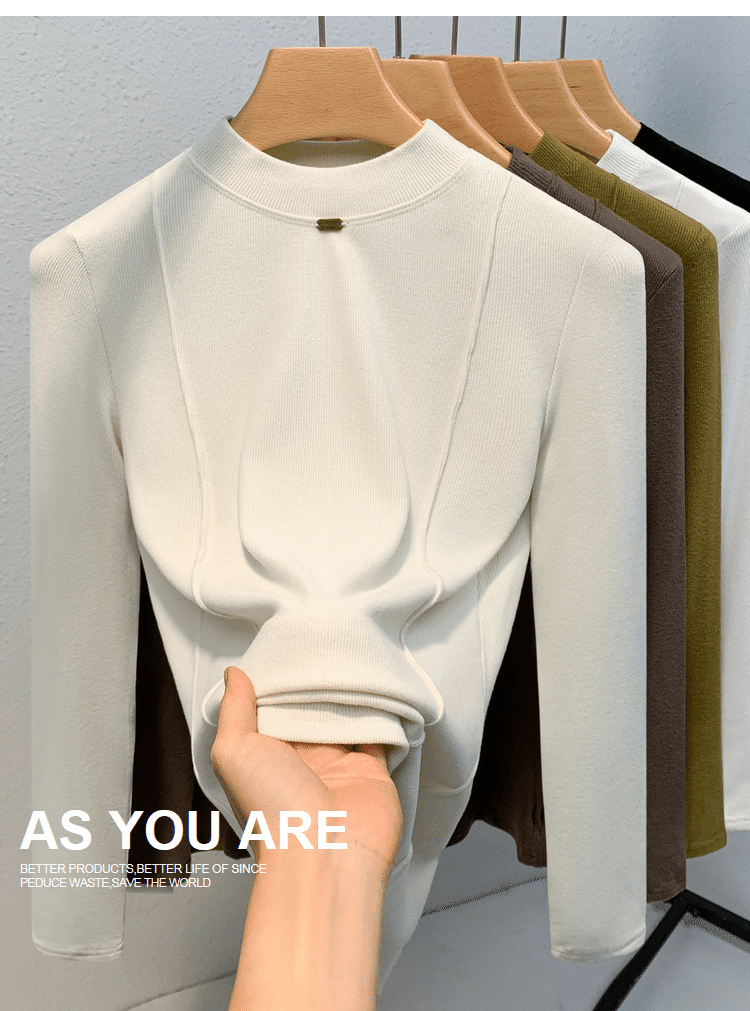 秋冬百搭設計感魚骨線德絨打底衫