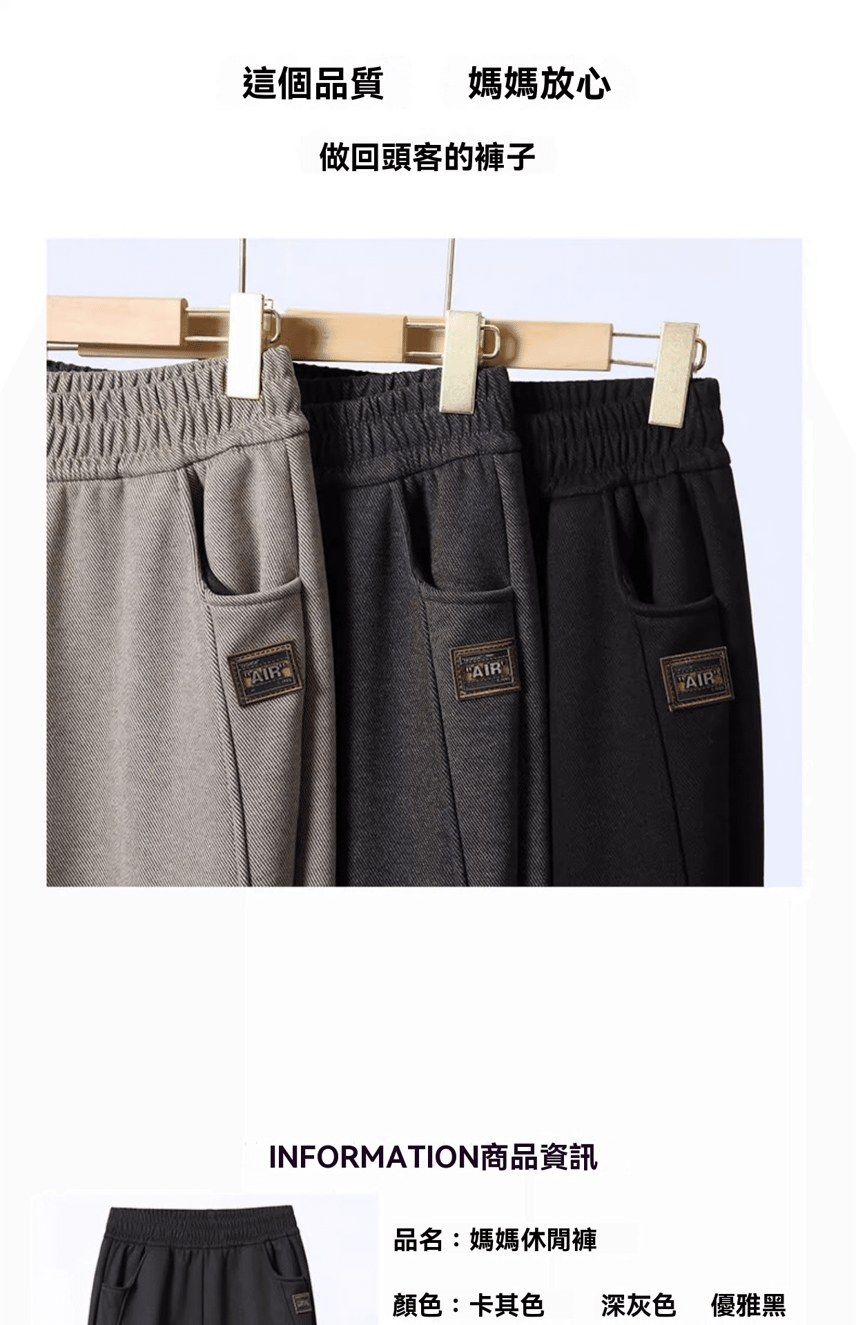 4分鐘前【均價NT$690/條買兩條更划算】媽媽春秋直筒寬鬆毛呢褲 加絨款 黑色+卡其