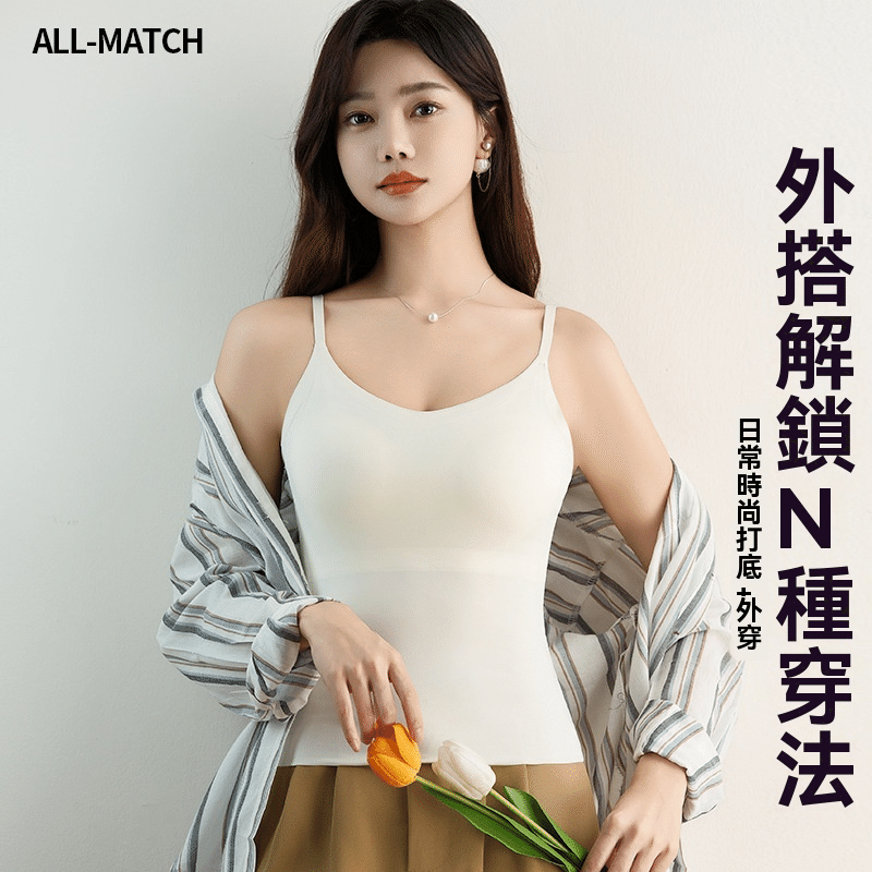 1分鐘前【買一發四!每件均價275】無痕打底自帶胸墊吊帶背心(黑色,白色,卡其,灰色各一件)