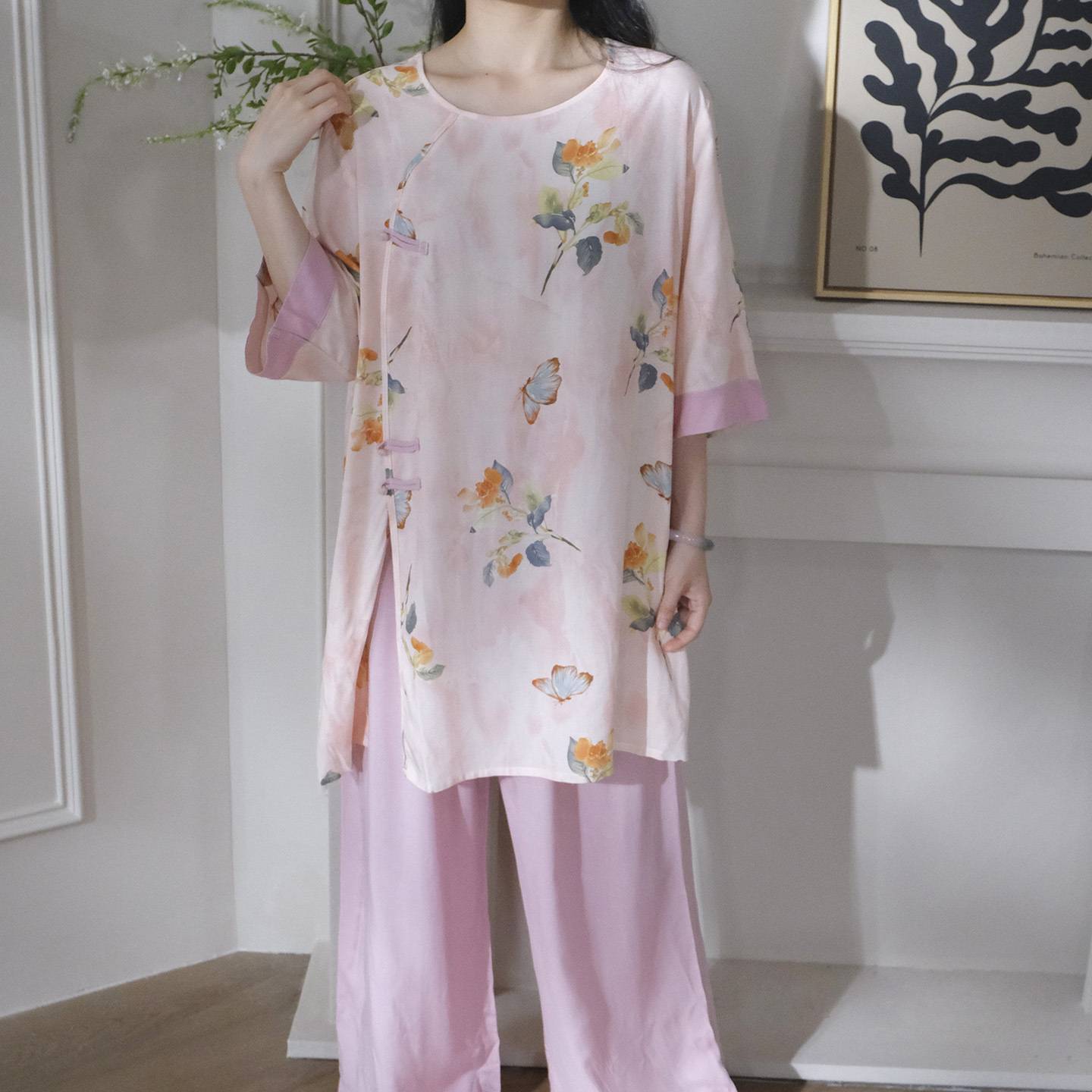 5分鐘前【均碼40-80公斤可穿】可外穿新中式國風復古人棉套裝 粉蝶