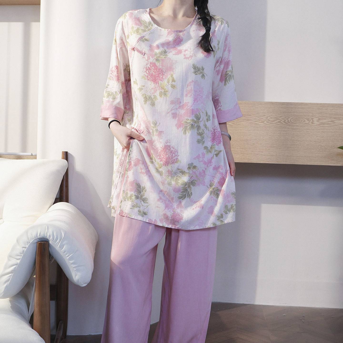 半小時前【均碼40-80公斤可穿】可外穿新中式國風復古人棉套裝 菊花粉
