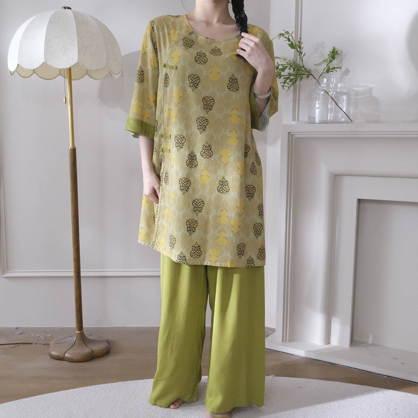 半小時前【均碼40-80公斤可穿】可外穿新中式國風復古人棉套裝 綠葫蘆